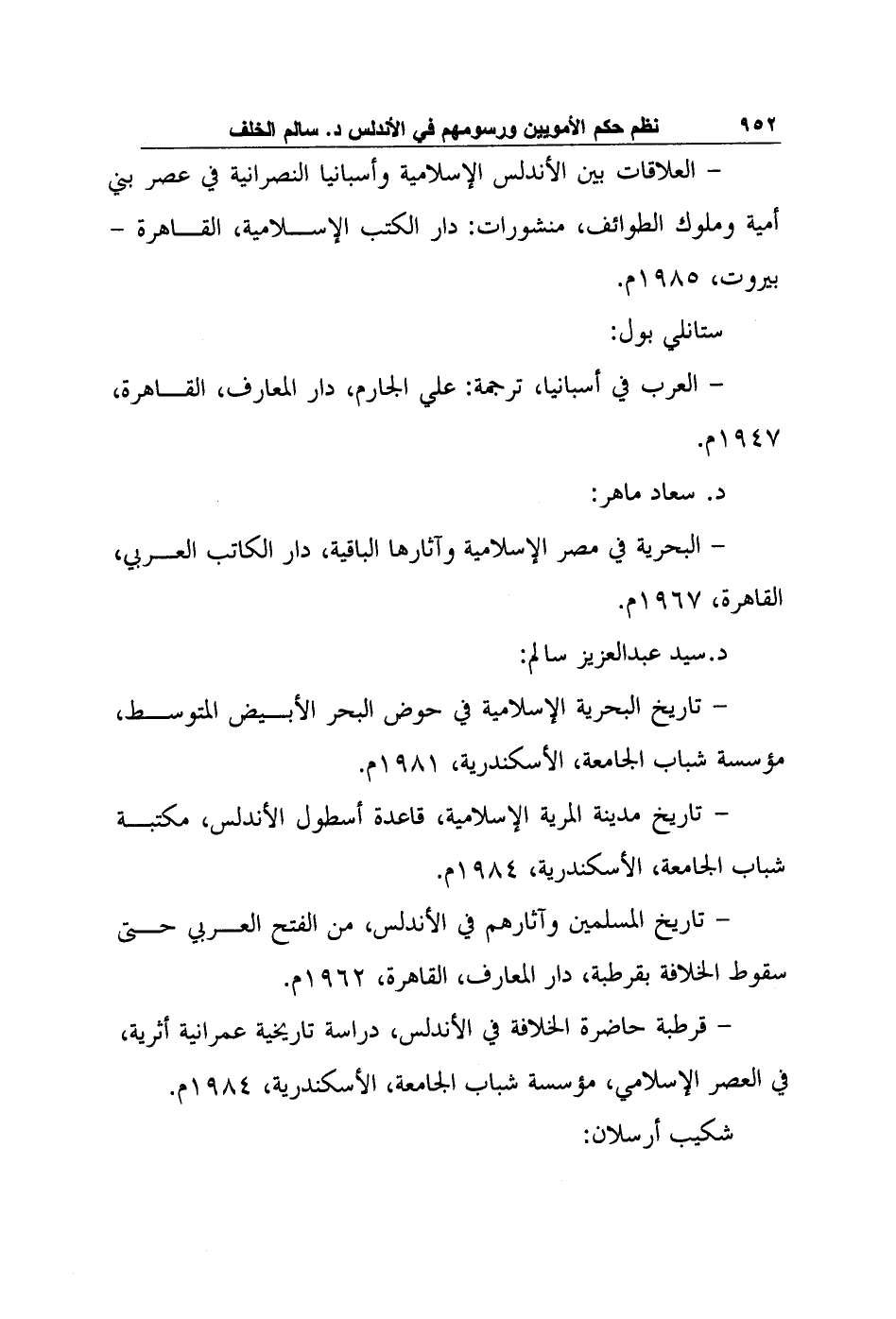 - قرطبة حاضرة الخلافة في الأندلس، دراسة تاريخية عمرانية أثرية، في العصر الإسلامي، مؤسسة شباب الجامعة، الإسكندرية، 1984م.