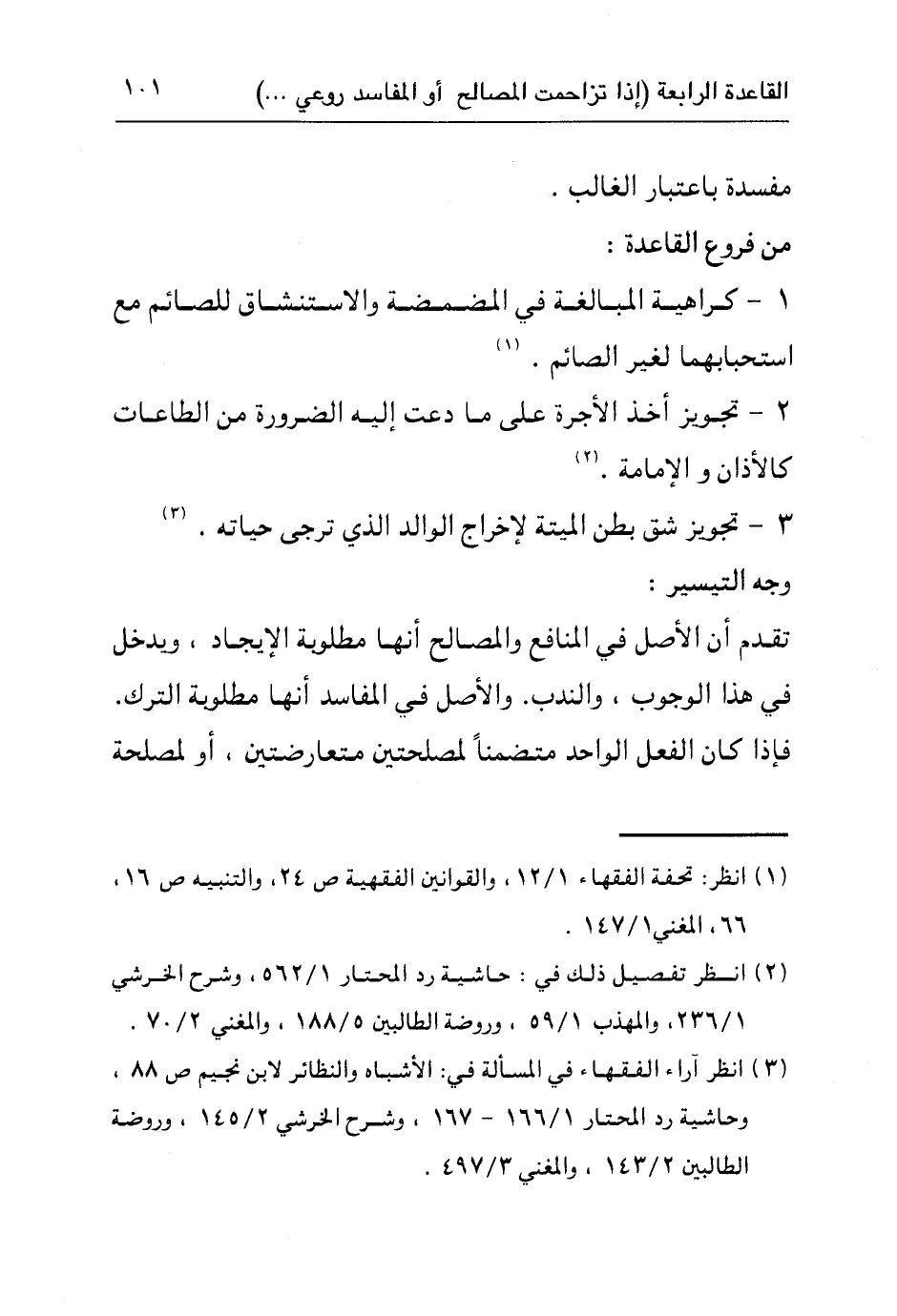 ٣ انظر آراء الفقهاء في المسألة في: الأشباه والنظائر لابن النجيم ص٨٨، وحاشية رد المحتار ١/١٦٦-١٦٧، وشرح الخرشي ٢/١٤٥، وروضة الطالبين ٢/١٤٣، والمغني ٣/٤٩٧.