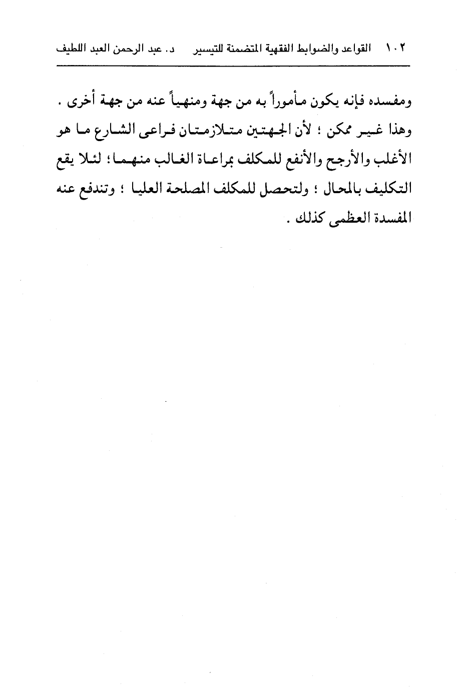 ومفسدة فإنه مأمورا به من جهة ومنهيا عنه من جهة أخرى. وهذا غير ممكن؛ لأن الجهتين متلازمتان فراعى الشارع ما هو الأغلب والأرجح والأنفع للمكلف بمراعة الغالب منهما؛ لئلا يقع التكليف بالمحال؛ ولتحصل للمكلف المصلحة العليا؛ وتندفع عنه المفسدة العظمى كذلك.