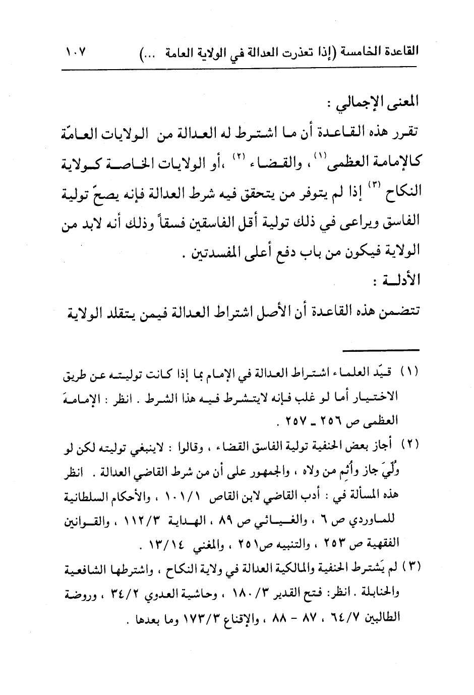 تتضمن هذه القاعدة أن الأصل اشتراط العدالة فيمن يتقلد الولاية