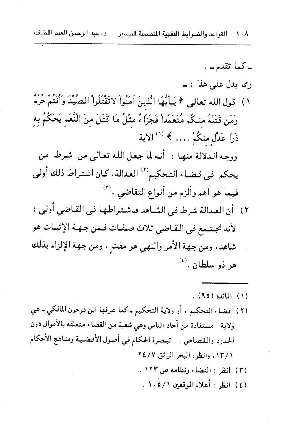 ووجه الدلالة منها: أنه لما جعل الله تعالى من شرط من يحكم في قضاء التحكيم٢ العدالة، كان اشتراط ذلك أولى فيما هو أهم وألزم من أنواع التقاضي٣.
