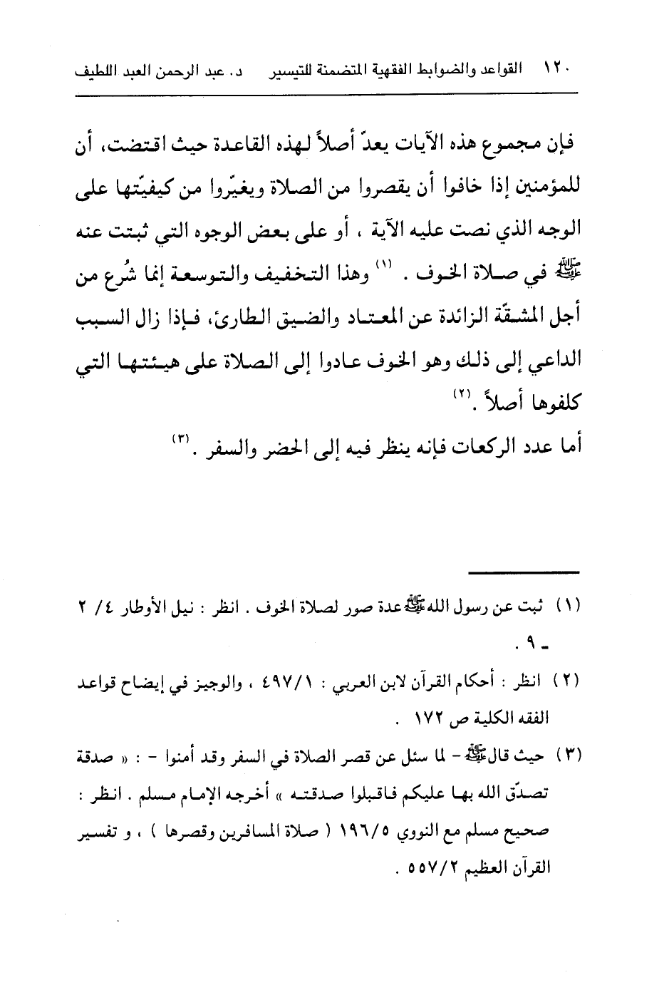 ٣ حيث قال صلى الله عليه وسلم – لمل سئل عن قصر الصلاة في السفر وقد أمنوا -: "صدقة تصدّق الله بها عليكم فاقبلوا صدقته" أخرجه الإمام مسلم. انظر: صحيح مسلم مع النووي ٥/١٩٦ (صلاة المسافرين وقصرها) ، وتفسير القرآن العظيم ٢/٥٥٧.