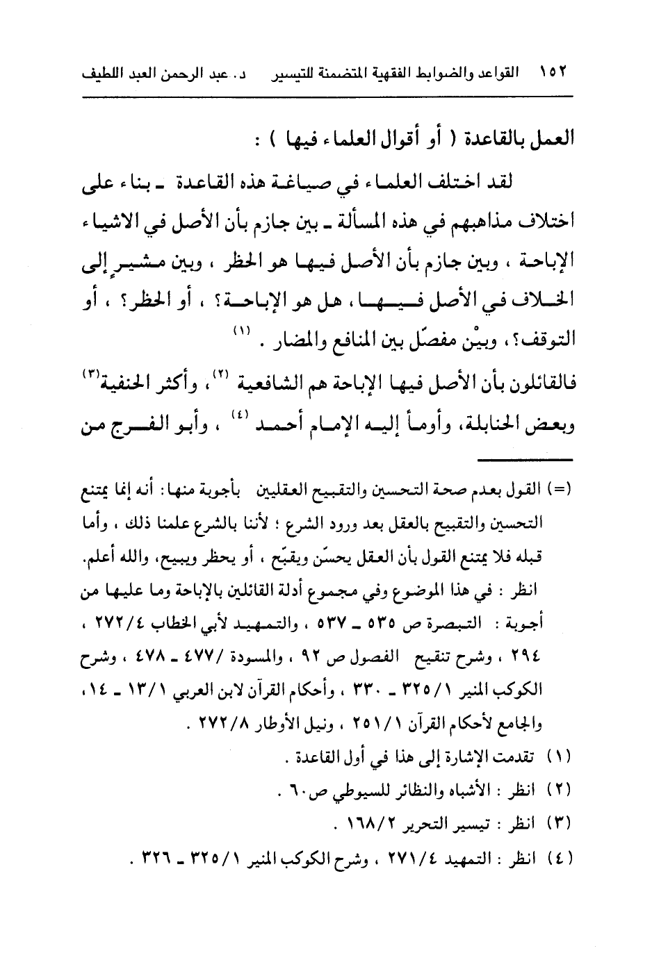 العمل بالقاعدة (أو أقوال العلماء فيها) :