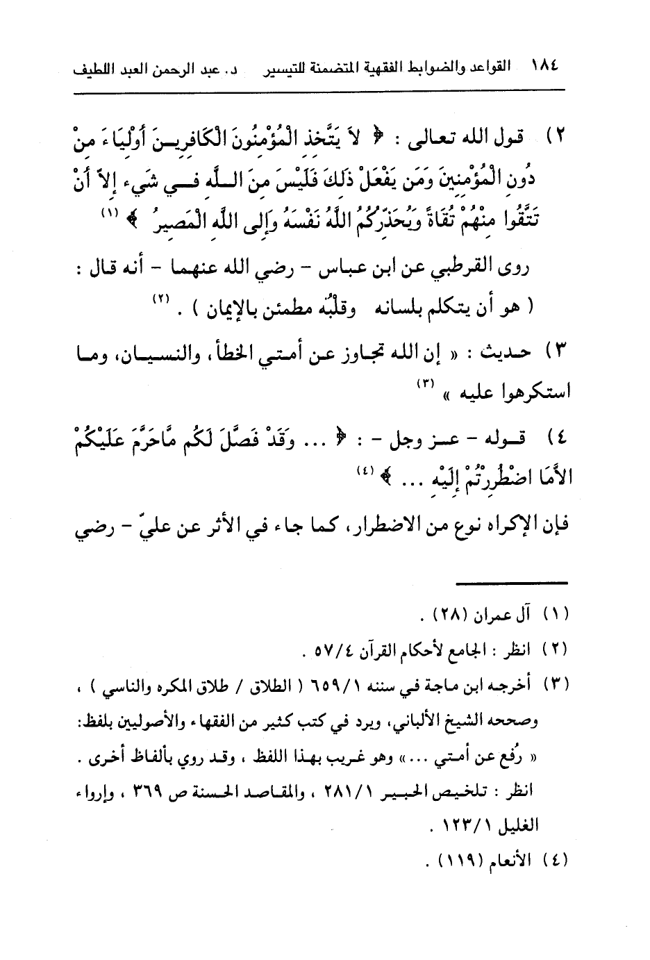 ٣) حديث: "إن الله تجاوز عن أمتي الخطأ، والنسيان، وما استكرهوا عليه"٣.