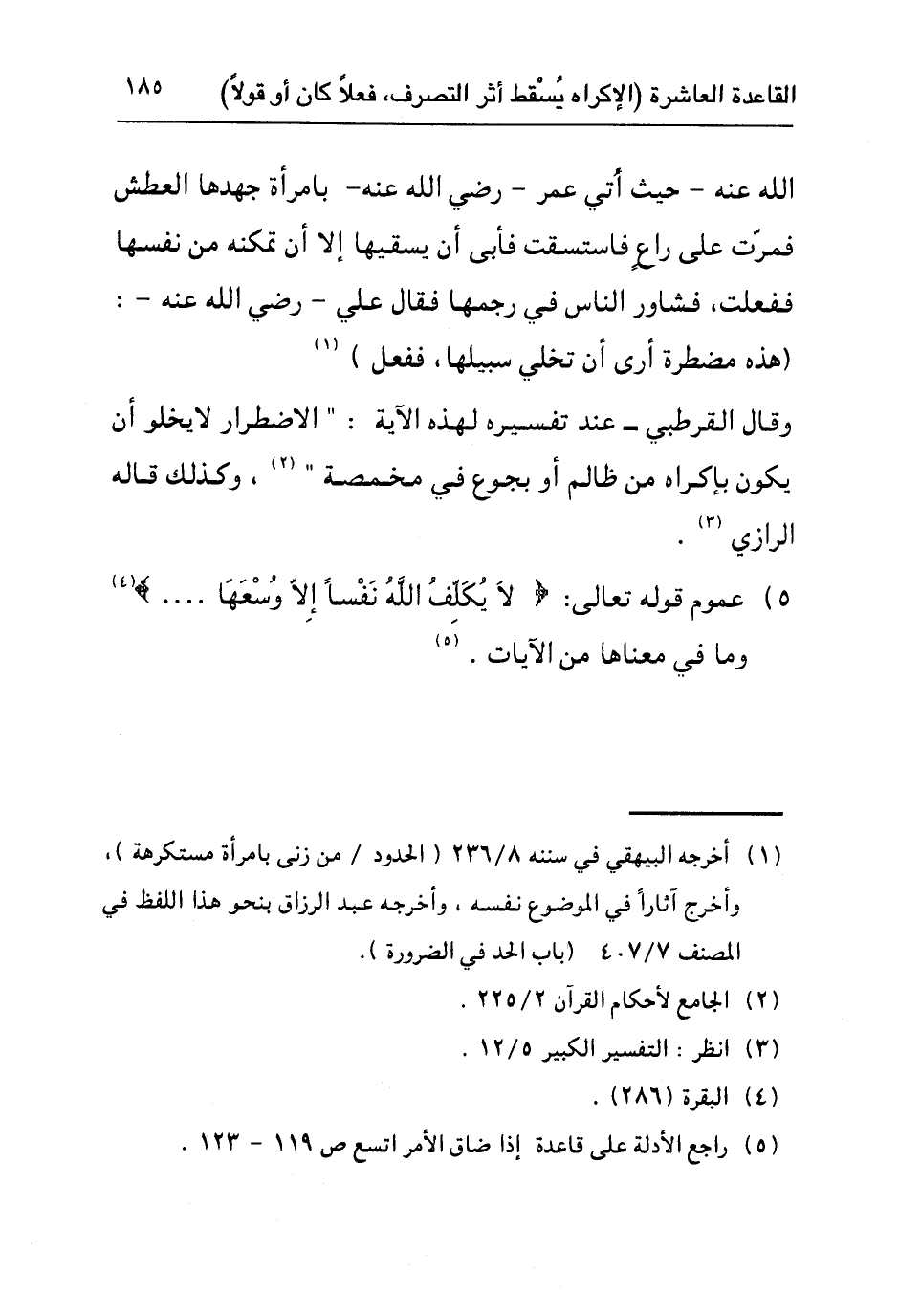 ٥) عموم قوله تعالى: {لا يُكَلِّفُ اللَّهُ نَفْساً إِلاّ وُسْعَهَا} ٤ وما في معناها من الآيات٥.