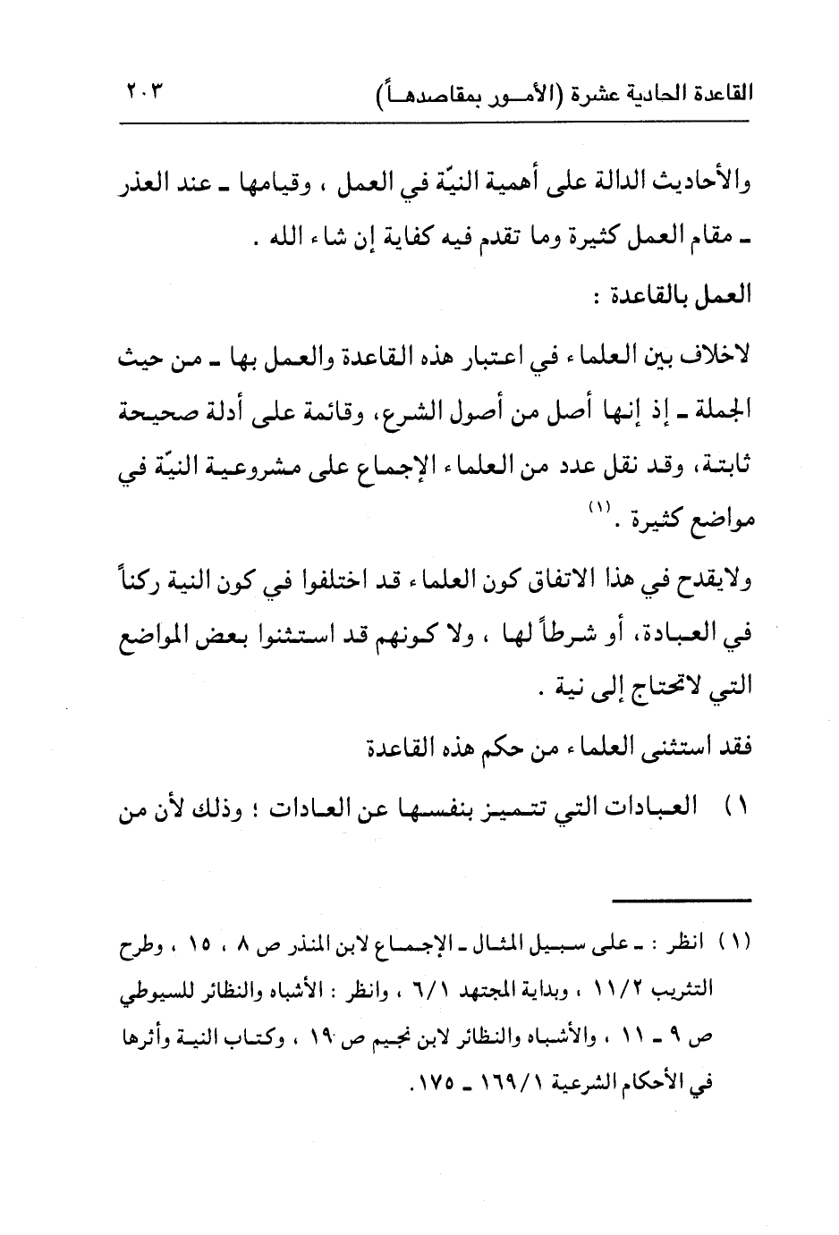 ١ انظر: على سبيل المثال الإجماع لابن المنذر ص٨-١٥، وطرح التثريب ٢/١١، وبداية المجتهد ١/٦، وانظر: الأشباه والنظائر للسيوطي ص٩-١١، والأشباه والنظائر لابن نجيم ص١٩، وكتاب النية وأثرها في الأحكام الشرعية ١/١٦٩-١٧٥.