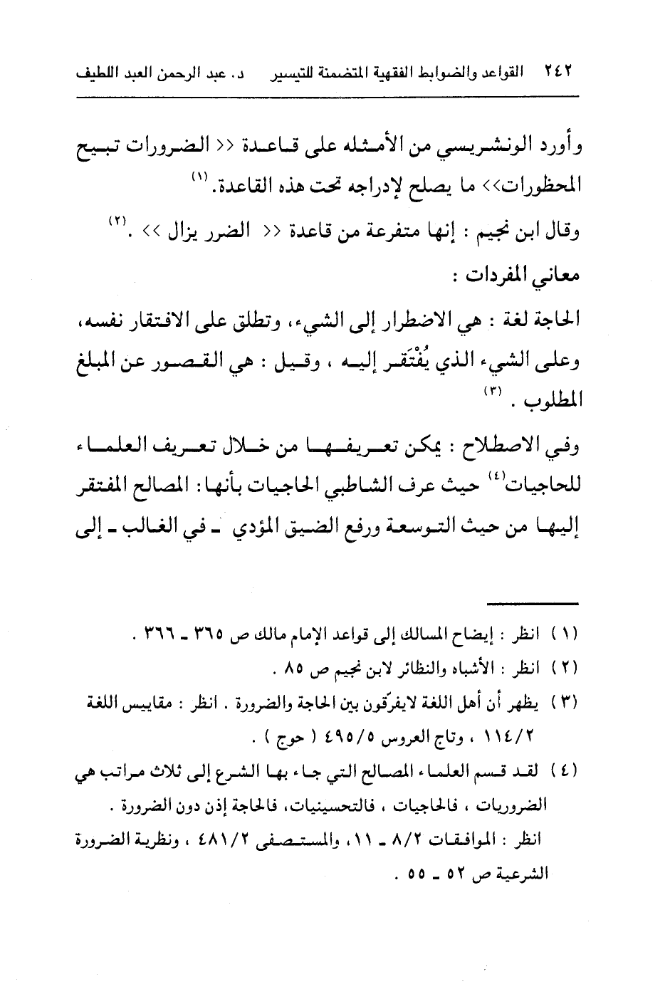 ٣ يظهر أن أهل اللغة لا يفرقون بين الحاجة والضرورة. انظر: مقاييس اللغة ٢/١١٤، وتاج العروس ٥/٤٩٥ (حوج) .