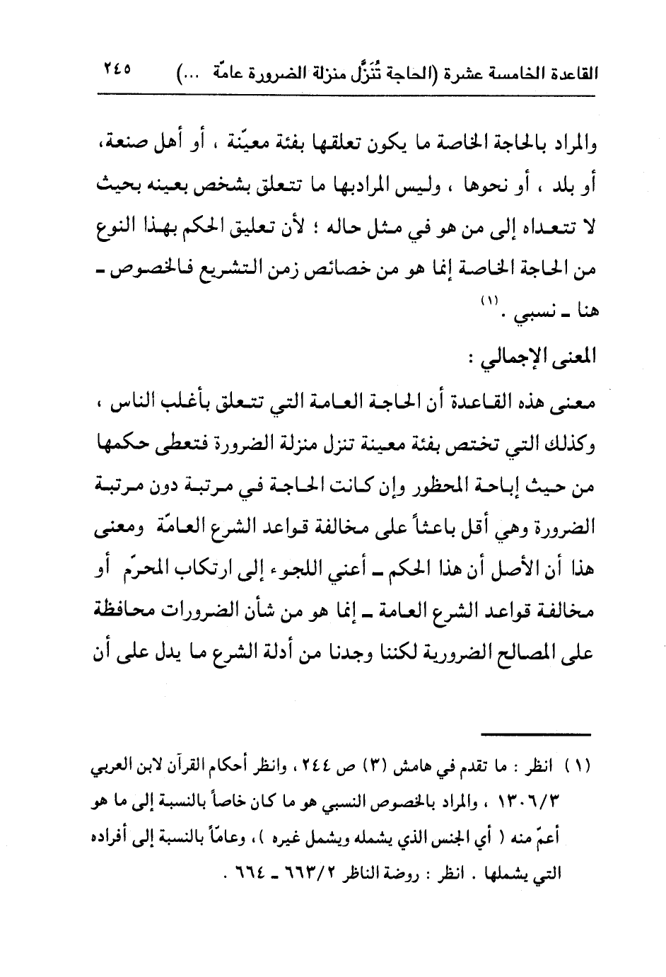 والمراد بالحاجة الخاصة ما يكون تعلقها بفئة معينة، أو أهل صنعة، أو بلد، أو نحوها، وليس المراد بها ما تتعلق بشخص بعينه بحيث لا تتعداه إلى من هو في مثل حاله؛ لأن تعليق الحكم بهذا النوع من الحاجة الخاصة إنما هو من خصائص زمن التشريع فالخصوص – هنا - نسبي١.