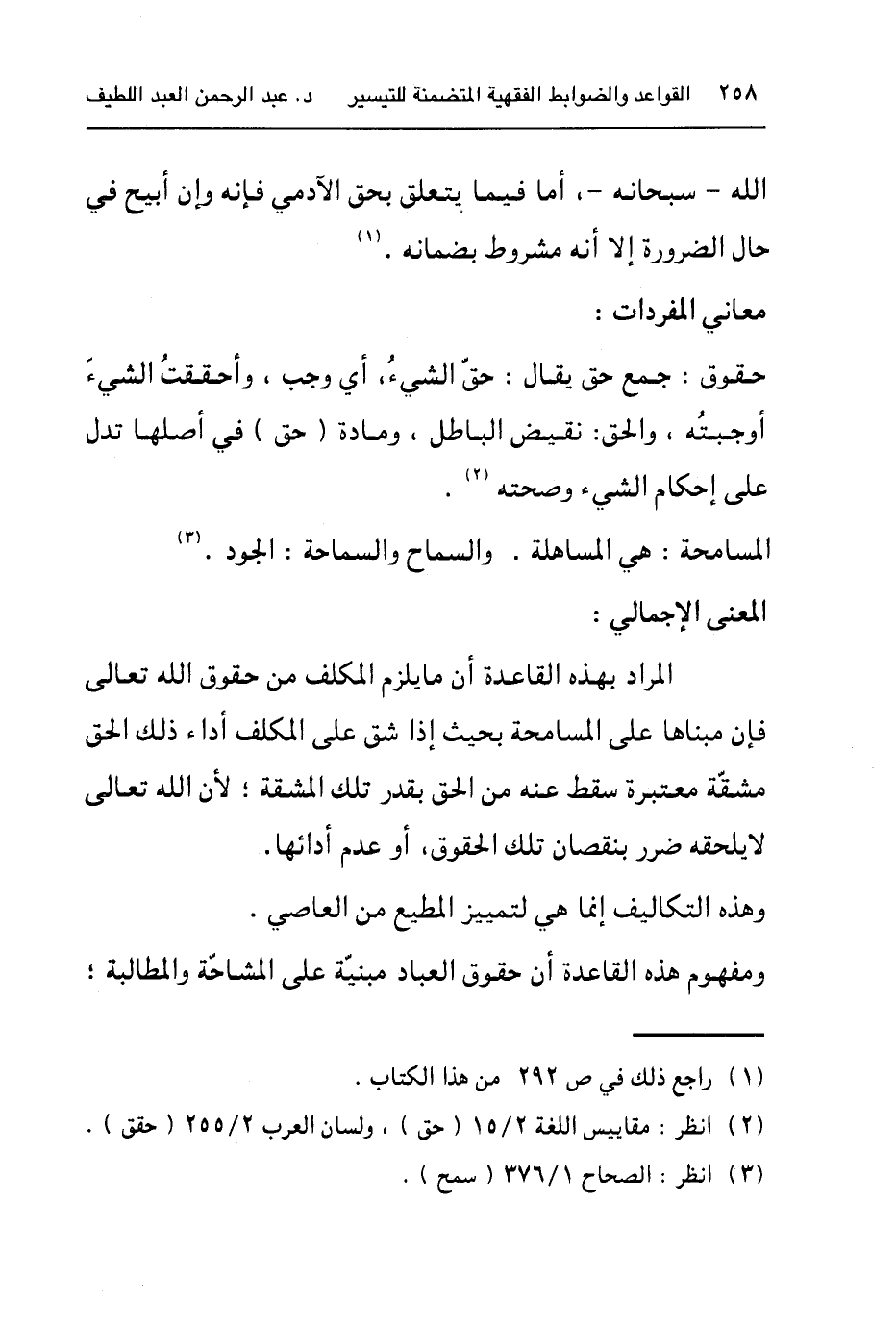 ٢ انظر: مقاييس اللغة ٢/١٥ (حق) ، ولسان العرب ٢/٢٥٥ (حقق) .