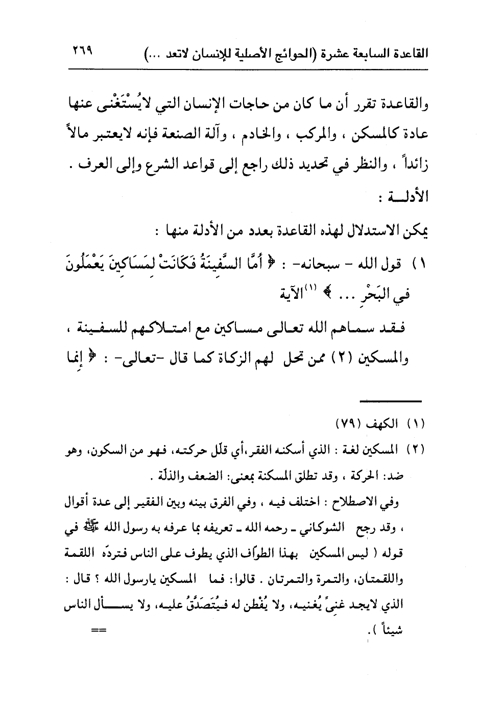 فقد سماهم الله تعالى مساكين مع امتلاكهم السفينة، والمسكين٢ ممن تحل لهم الزكاة كما قال تعالى: {إِنَّمَا