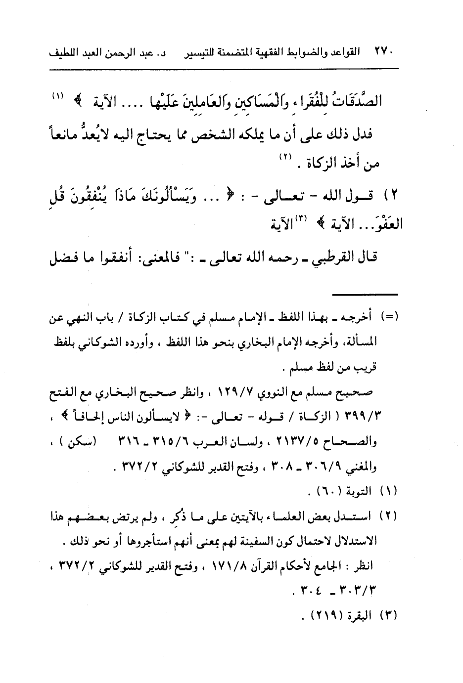 ٢) قول الله تعالى: {وَيَسْأَلونَكَ مَاذَا يُنْفِقُونَ قُلِ الْعَفْوَ} ٣ الآية.