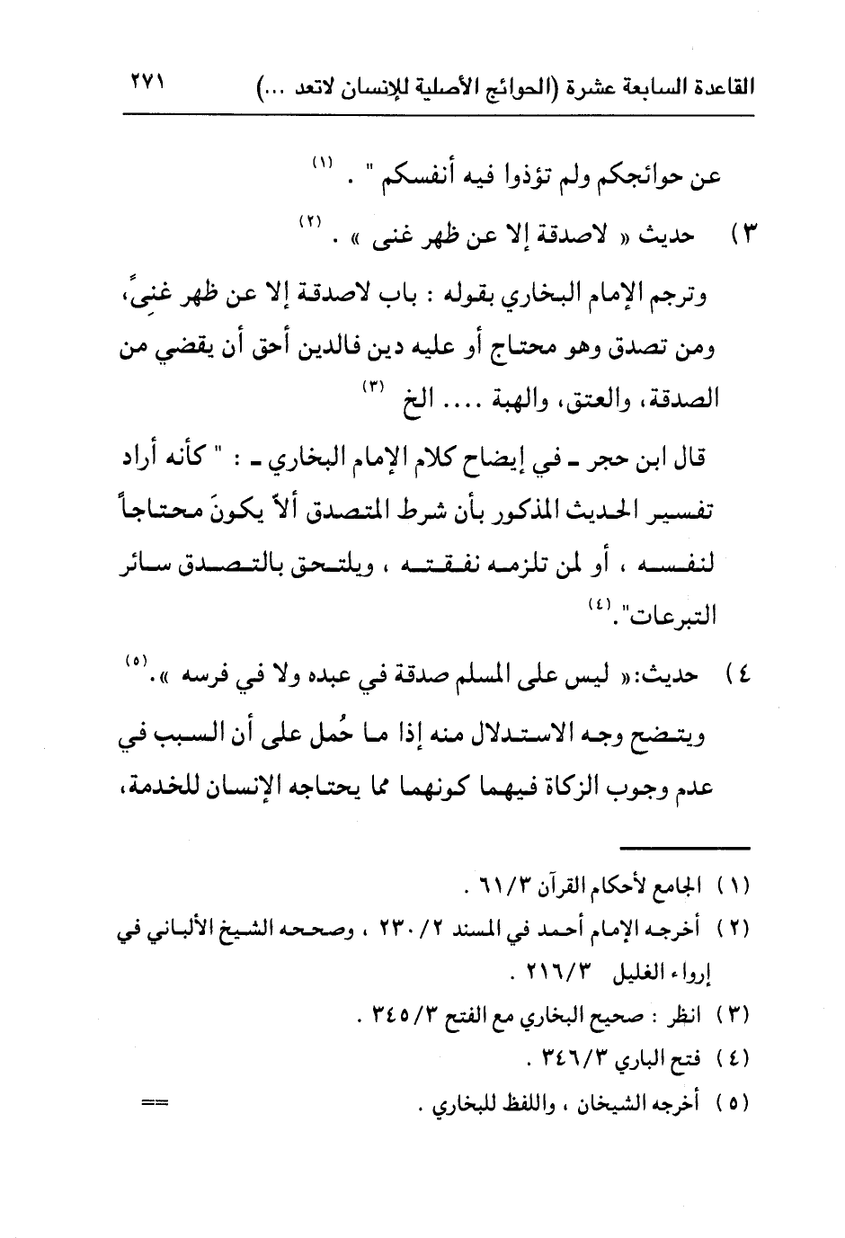 ٣) حديث: "لا صدقة إلا عن ظهر غنى" ٢.