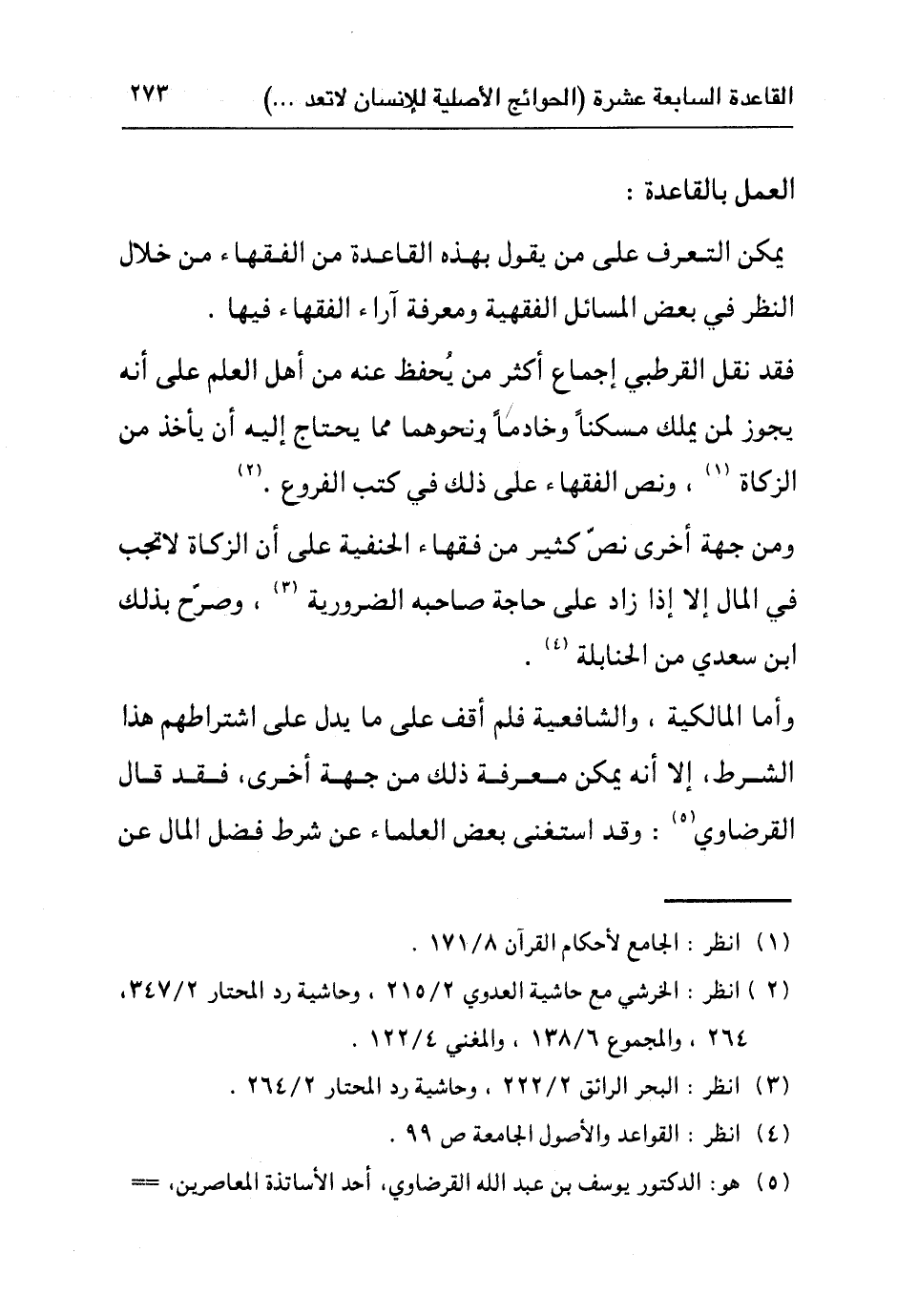 ٥ هو: الدكتور يوسف بن عبد الله القرضاوي، أحد الأساتذة المعاصرين، ولد في ٩/٩/١٩٢٦ في قرية من توابع المحلة الكبرى بمصر، ونشأ في حضن عمه بعد وفاة والده. تخرج من كلية أصول الدين عام ٥٢-١٩٥٣م وحصل على شهادات أخر. حصل على الدكتوراه عام ١٩٧٣م وعنوان رسالته [الزكاة في الإسلام] ، عمل أستاذا ورئيسا لقسم الدراسات الإسلامية بكلية التربية في قطر، وشارك في عدد من المؤتمرات والندوات. له عدد من المؤلفات في الفقه وغيره منها: [فقه الزكاة] ، و [العبادة في الإسلام] . انظر: ترجمته في كتاب علماء ومفكرون عرفتهم ١/٤٦١-٤٩٠.