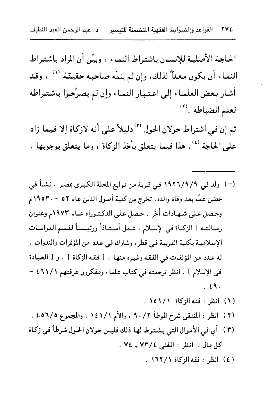 ٤ انظر: فقه الزكاة ١/١٦٢.