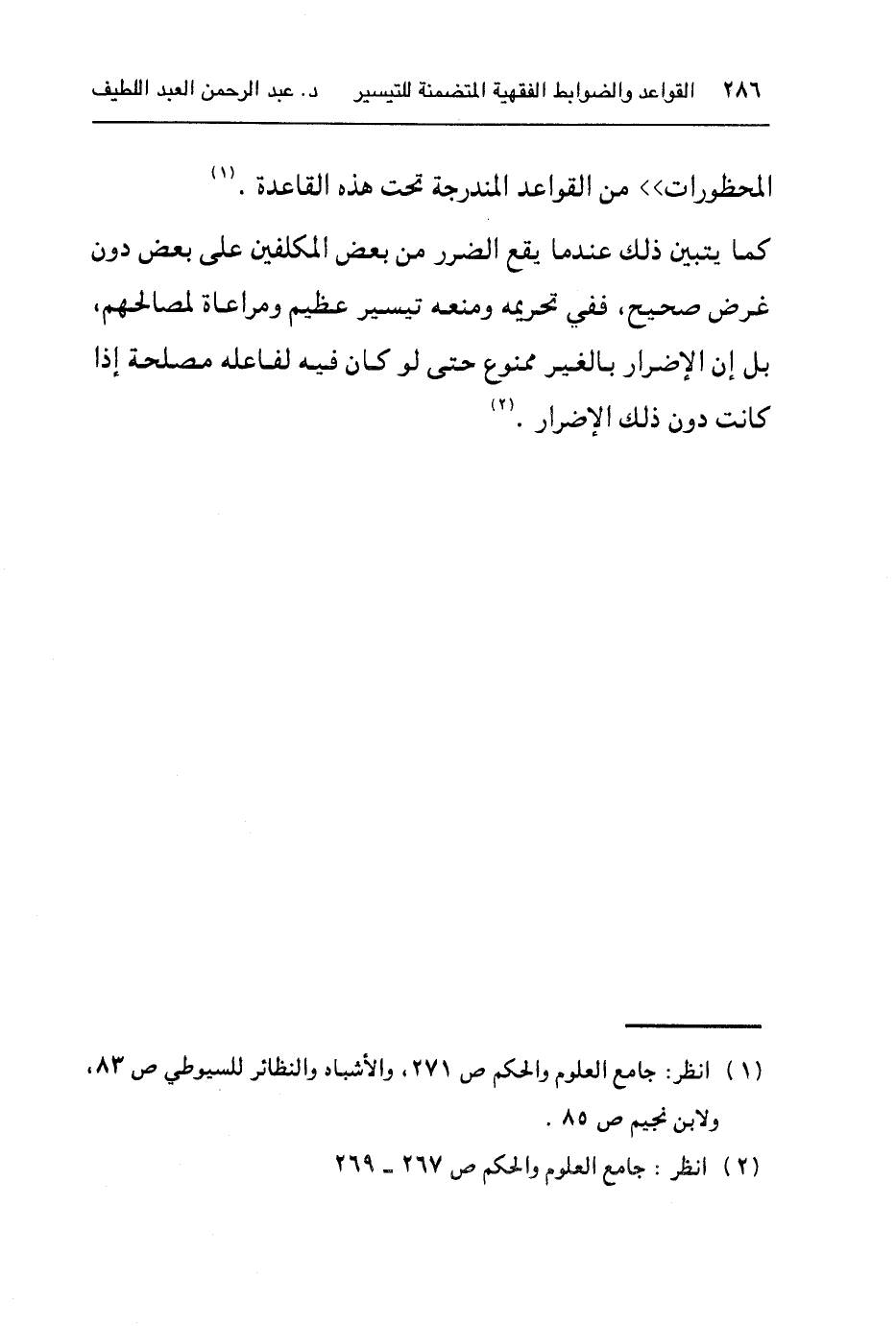 ١ انظر: جامع العلوم والحكم ص٢٧١، والأشباه والنظائر للسيوطي ص٨٣ ولابن نجيم ص٨٥.