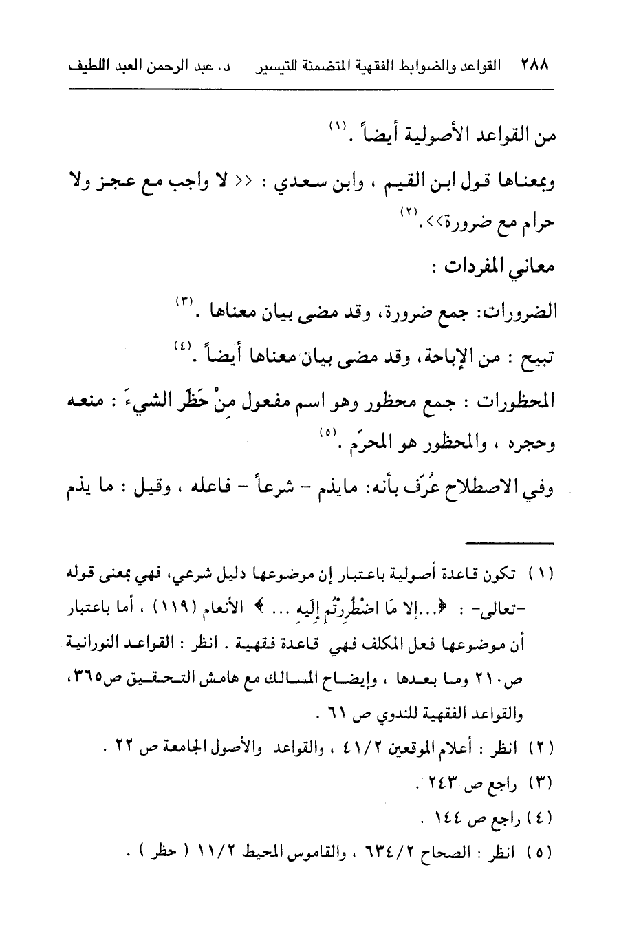 وبمعناها قول ابن القيم، وابن سعدي: ((لا واجب مع عجز ولا حرام مع ضرورة)) ٢.