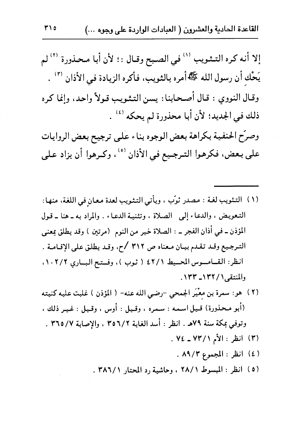 ٢ هو: سمرة بن مِعْيَر الجمحي رضي الله عنه (المؤذن) غلبت عليه كنيته (أبو محذورة) قيل اسمه: سمرة، وقيل: أوس، وقيل: غير ذلك، وتوفي بمكة سنة ٧٩هـ. انظر: أسد الغابة ٢/٣٥٦، والإصابة ٧/٣٦٥.
