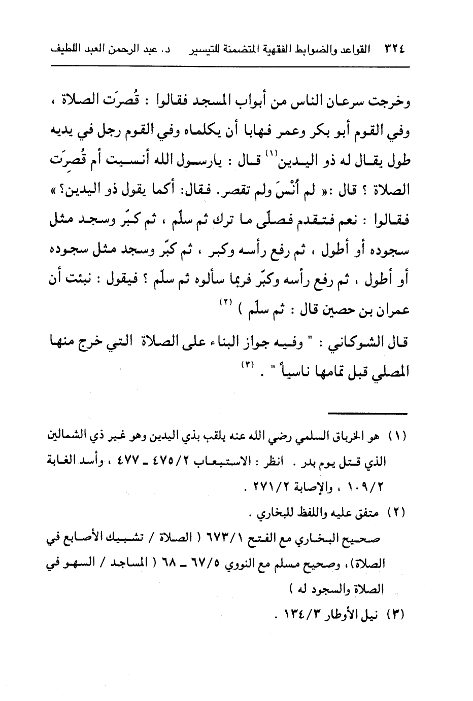 ٢ متفق عليه واللفظ للبخاري. صحيح البخاري مع الفتح ١/٦٧٣ (الصلاة / تشبيك الأصابع في الصلاة) ، وصحيح مسلم مع النووي ٥/٦٧-٦٨ (المساجد / السهو في الصلاة والسجود له) .
