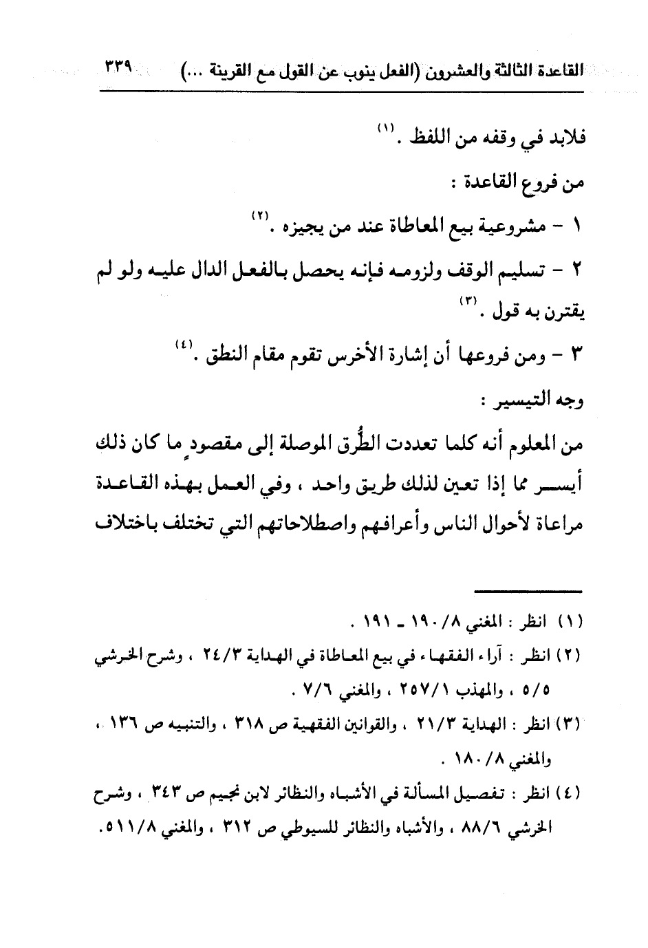 ٤ انظر: تفصيل المسألة في الأشباه والنظائر لابن نجيم ص٣٤٣، وشرح الخرشي ٦/٨٨، والأشباه والنظائر للسيوطي ص٣١٢، والمغني ٨/٥١١.