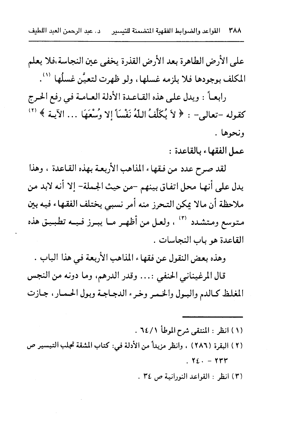 رابعا: ويدل على هذه القاعدة الأدلة العامة في رفع الحرج كقوله تعالى: {لا يُكَلِّفُ اللَّهُ نَفْساً إِلاّ وُسْعَهَا} ٢ ونحوها.