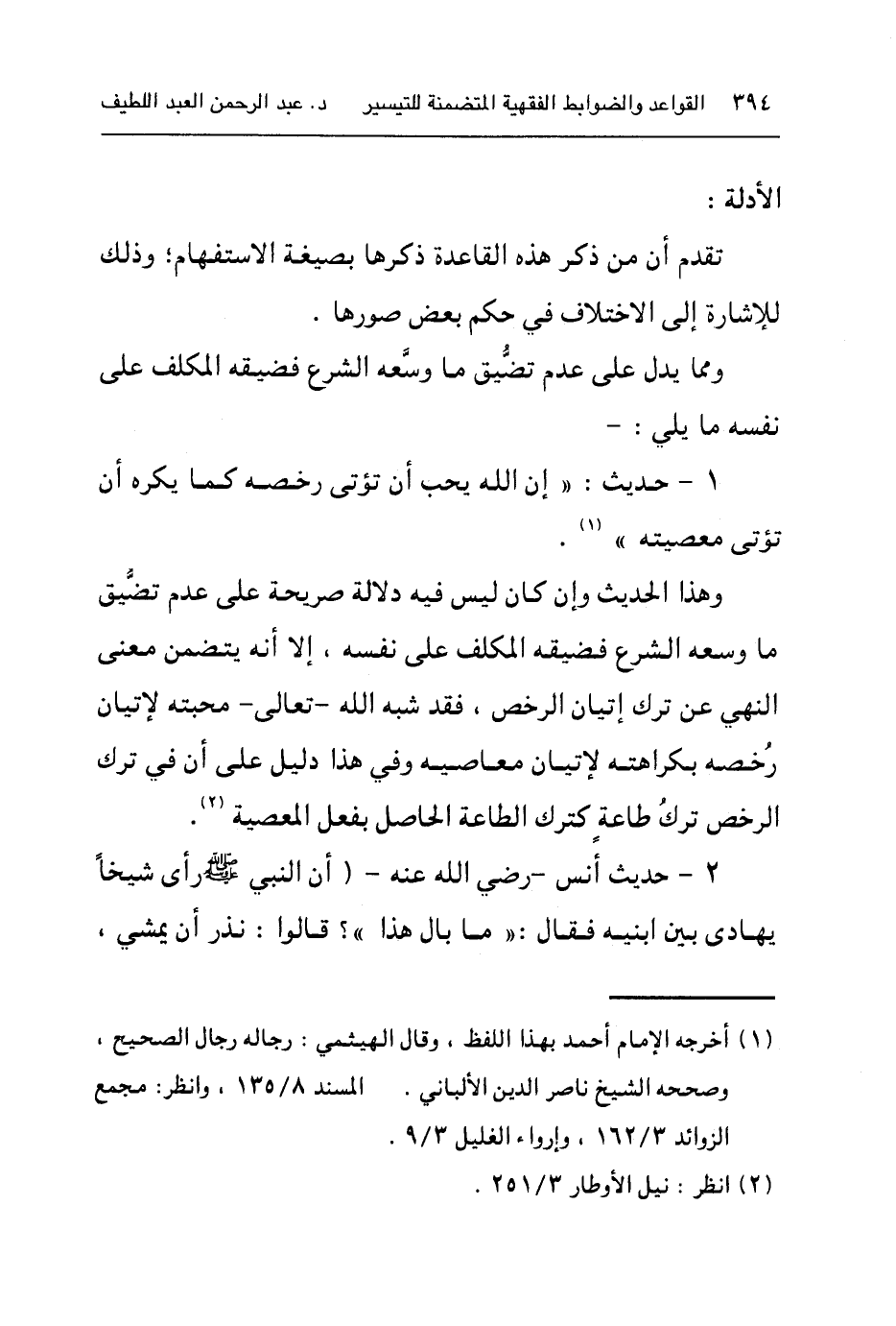 ١- حديث: "إن الله يحب أن تؤتى رخصه كما يكره أن تؤتى معصيته" ١.