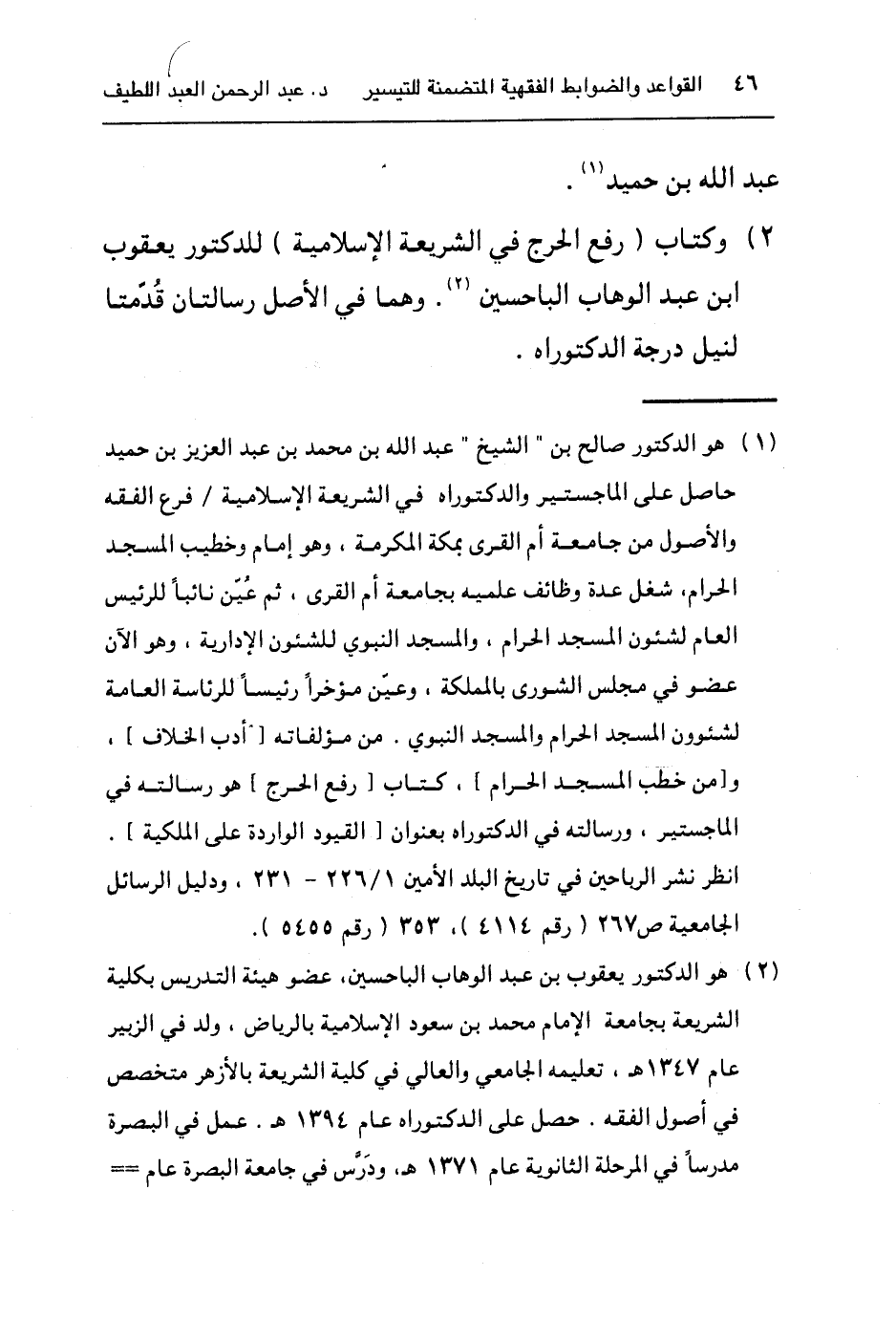 ٢) وكتاب (رفع الحرج في الشريعة الإسلامية) للدكتور يعقوب ابن عبد الوهاب الباحسين٢. وهما في الأصل رسالتان قدمتا لنيل درجة الدكتوراه.