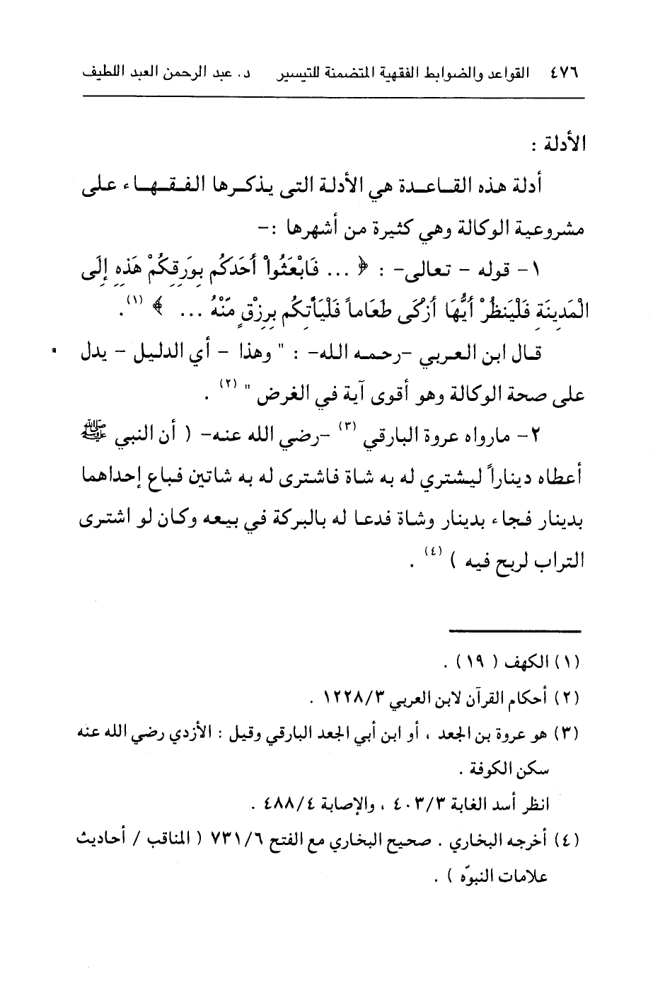 قال ابن العربي رحمه الله: "وهذا - أي الدليل - يدل على صحة الوكالة وهو أقوى آية في الغرض٢.