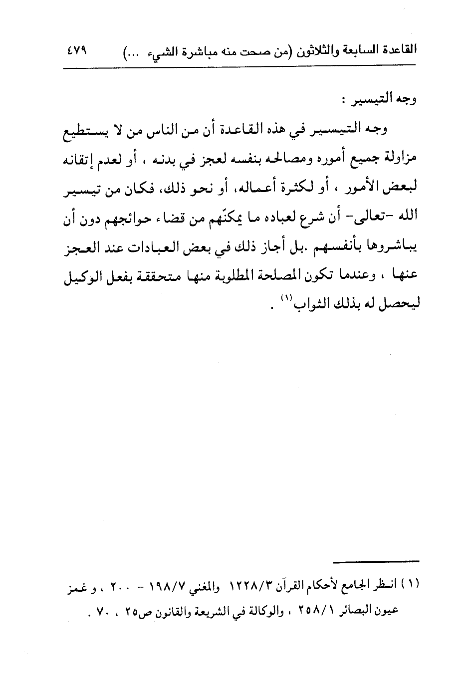 ١ انظر: الجامع لأحكام القرآن ٣/١٢٢٨، والمغني ٧/١٩٨-٢٠٠، وغمز عيون البصائر ١/٢٥٨، والوكالة في الشريعة والقانون ص٢٥، ٧٠.
