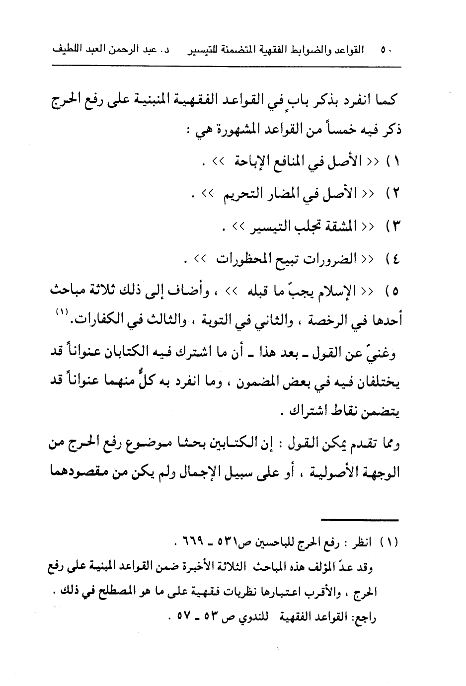 وقد عدّ المؤلف هذه المباحث الثلاثة الأخيرة ضمن القواعد المبنية على رفع الحرج، والأقرب اعتبارها نظريات فقهية على ماهو المصطلح في ذلك. راجع: القواعد الفقهية للندوي ص٥٣-٥٧.