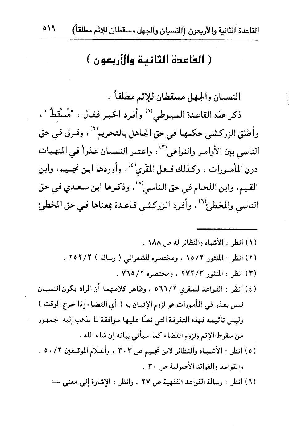 القاعدة الثانية والأربعون النسيان والجهل مسقطان للإثم مطلقا