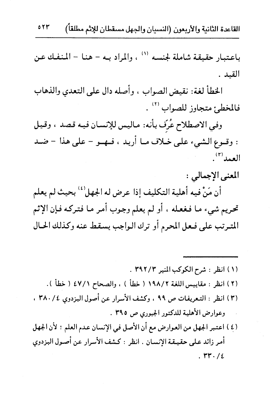 أن من فيه أهلية التكليف إذا عرض له الجهل٤ بحيث لم يعلم تحريم شيء ما ففعله، أو لم يعلم وجوب أمر ما فتركه فإن الإثم المترتب على فعل المحرم أو ترك الواجب يسقط عنه وكذلك الحال