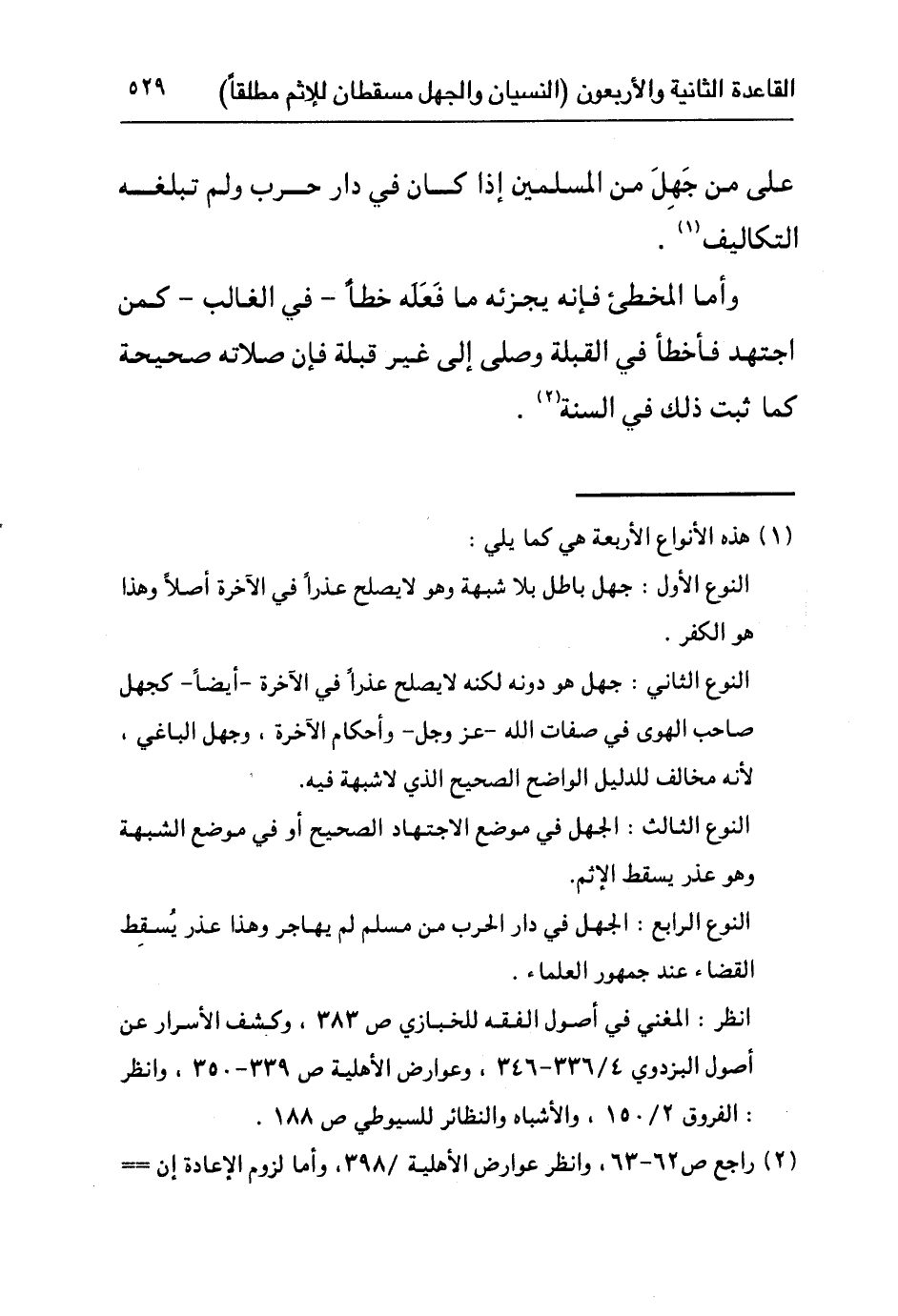 النوع الرابع: الجهل في دار الحرب من مسلم لم يهاجر وهذا عذر يُسقط القضاء عند جمهور العلماء.