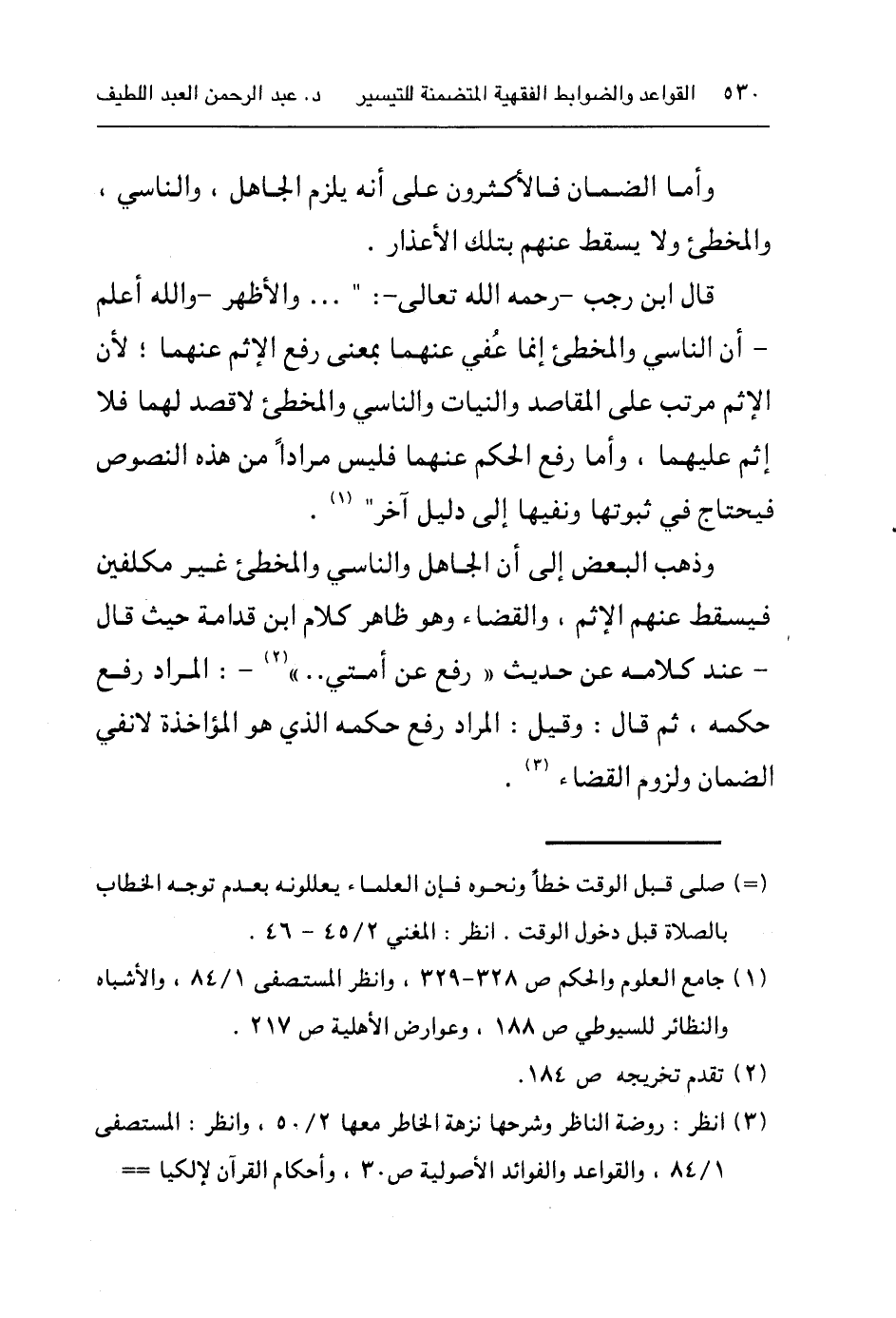 ٣ انظر: روضة الناظر وشرحها نزهة الخاطر معها ٢/٥٠، وانظر: المستصفى ١/٨٤، والقواعد والفوائد الأصولية ص٣٠، وأحكام القرآن لإلكيا الهراس ١/٤٣٧، وكتاب النسيان وأثره في الأحكام الشرعية ص٣٠-٣٧، ورفع الحرج للدكتور صالح بن حميد ص٢١٤.