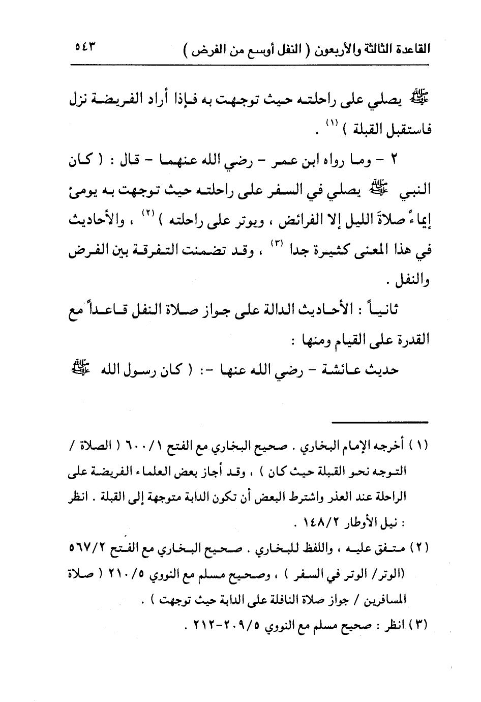 ١ أخرجه الإمام البخاري. صحيح البخاري مع الفتح ١/٦٠٠ (الصلاة / التوجه نحو القبلة حيث كان) ، وقد أجاز بعض العلماء الفريضة على الراحلة عند العذر واشترط البعض أن تكون الدابة متوجهة إلى القبلة. انظر: نيل الأوطار ٢/١٤٨.
