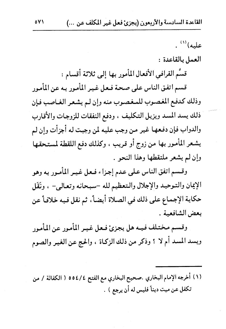 قسم القرافي الأفعال المأمور بها إلى ثلاثة أقسام: