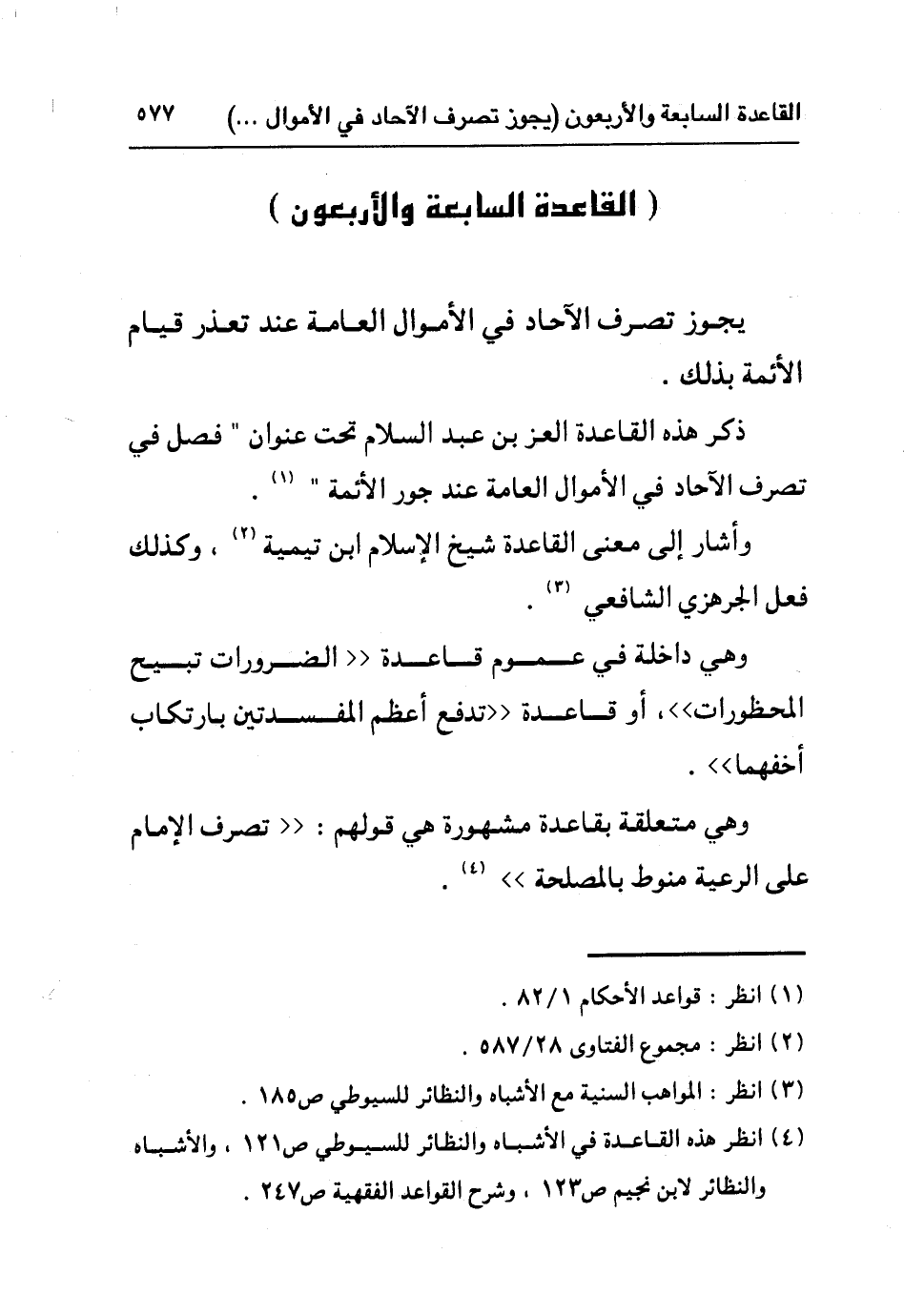 ٤ انظر هذه القاعدة في الأشباه والنظائر للسيوطي ص١٢١، والأشباه والنظائر لابن نجيم ص١٣٢، وشرح القواعد الفقهية ص٢٤٧.