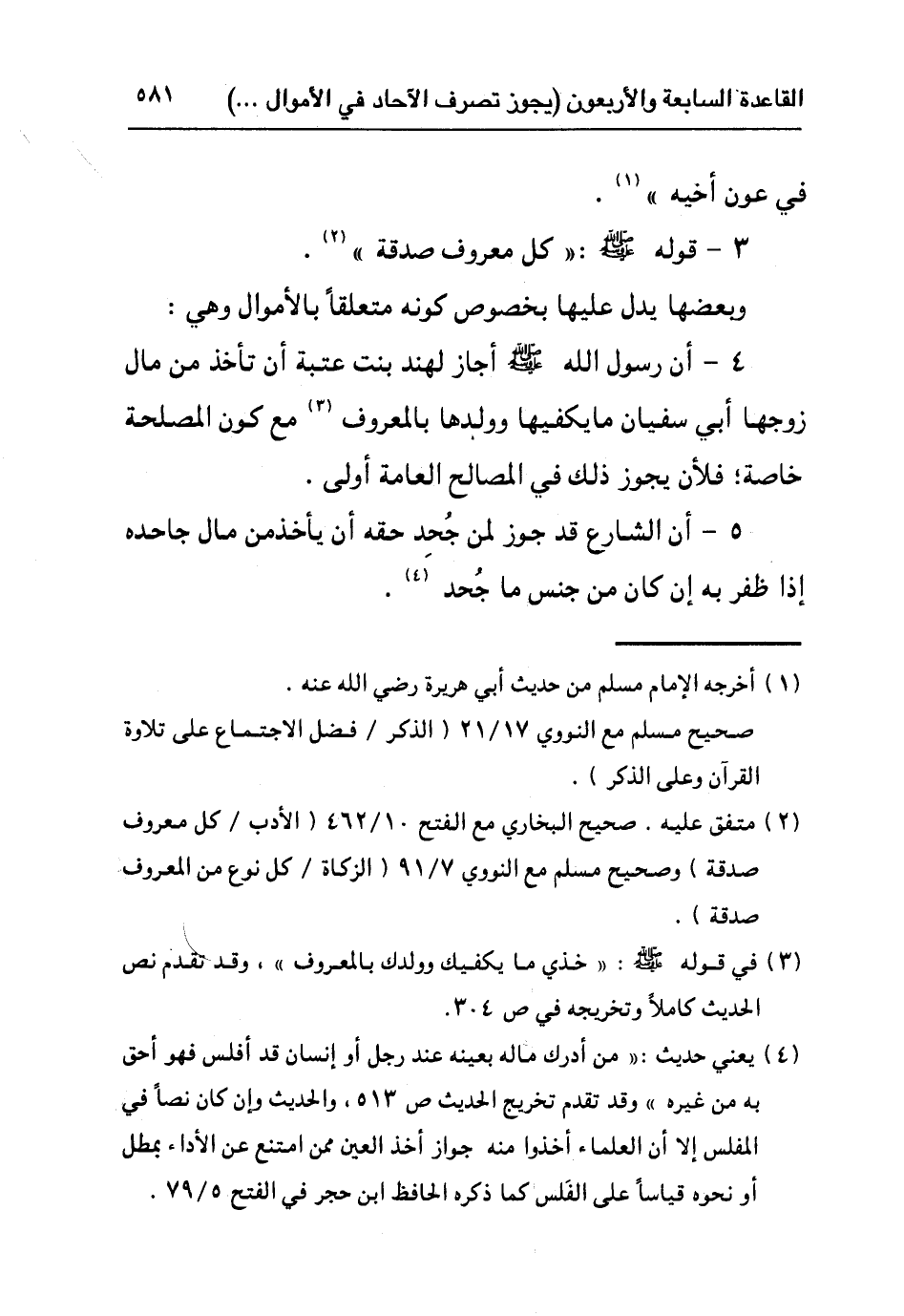 ٣ في قوله صلى الله عليه وسلم: "خذي ما يكفيك وولدك بالمعروف".