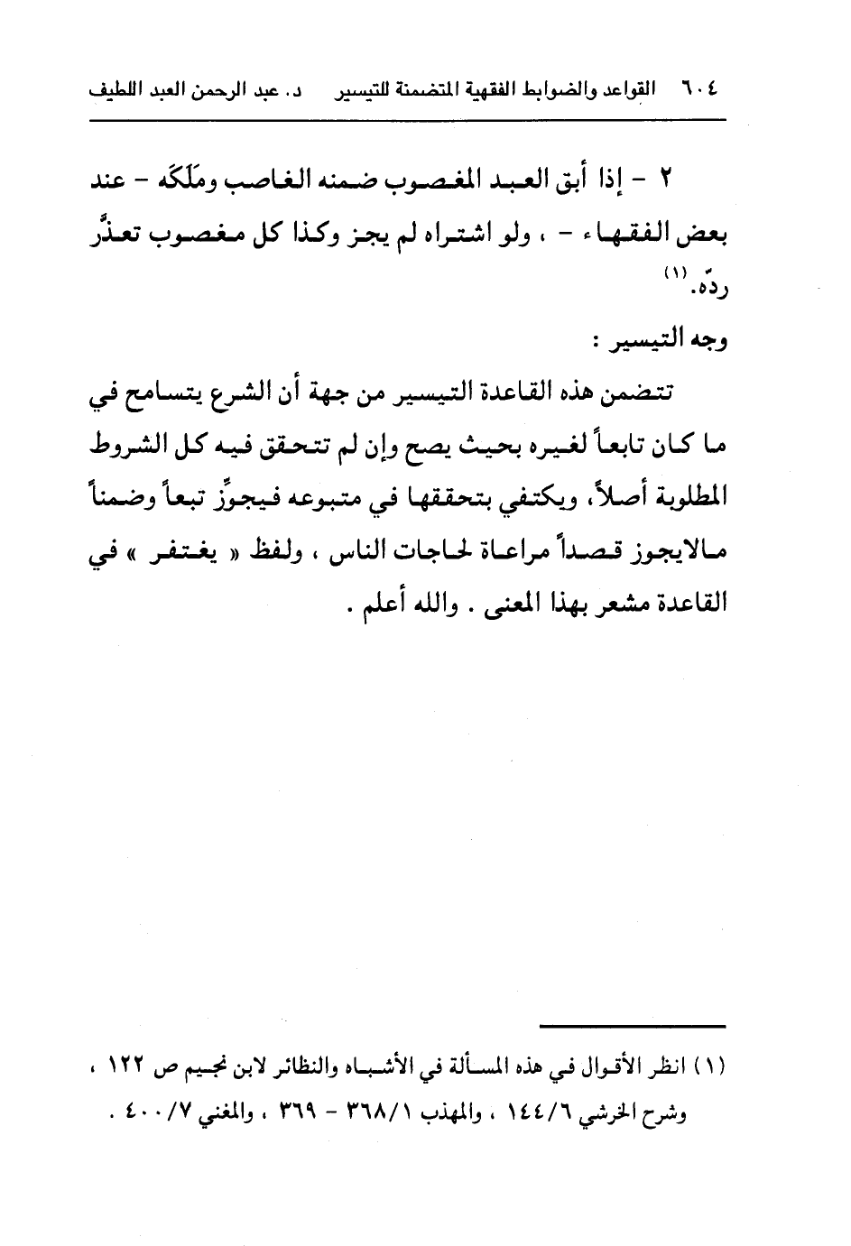 ١ انظر الأقوال في هذه المسألة في الأشباه والنظائر لابن نجيم ص١٢٢، وشرح الخرشي ٦/١٤٤، والمهذب ١/٣٦٨-٣٦٩، والمغني ٧/٤٠٠.