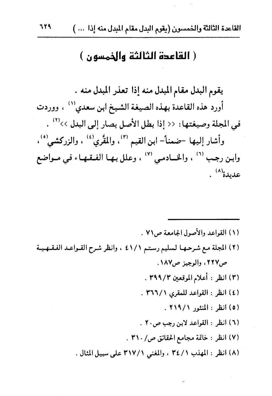 القاعدة الثالثة والخمسون: يقوم البدل مقام المبدل منه إذا تعذر المبدل منه.