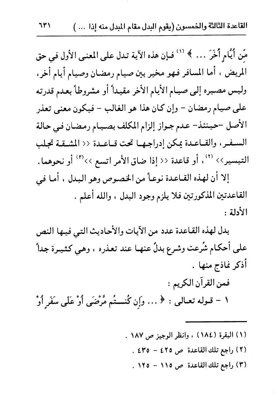 ١ البقرة (١٨٤) ، وانظر الوجيز ص١٨٧.
