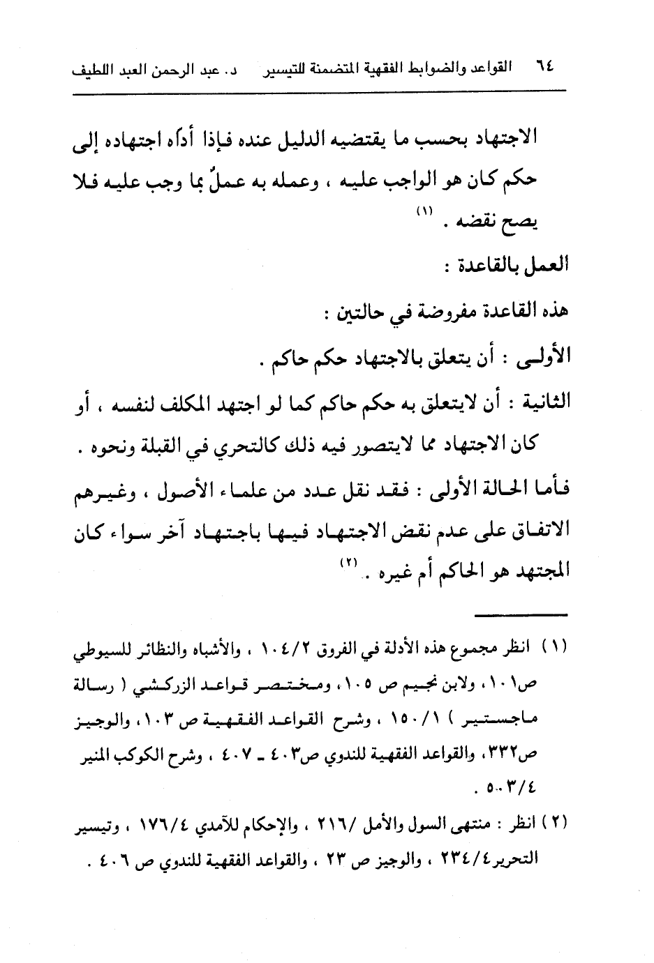 فأما الحالة الأولى: فقد نقل عدد من علماء الأصول، وغيرهم الاتفاق عل عدم نقض الاجتهاد فيها باجتهاد آخر سواء كان المجتهد هو الحاكم أم غيره.٢.