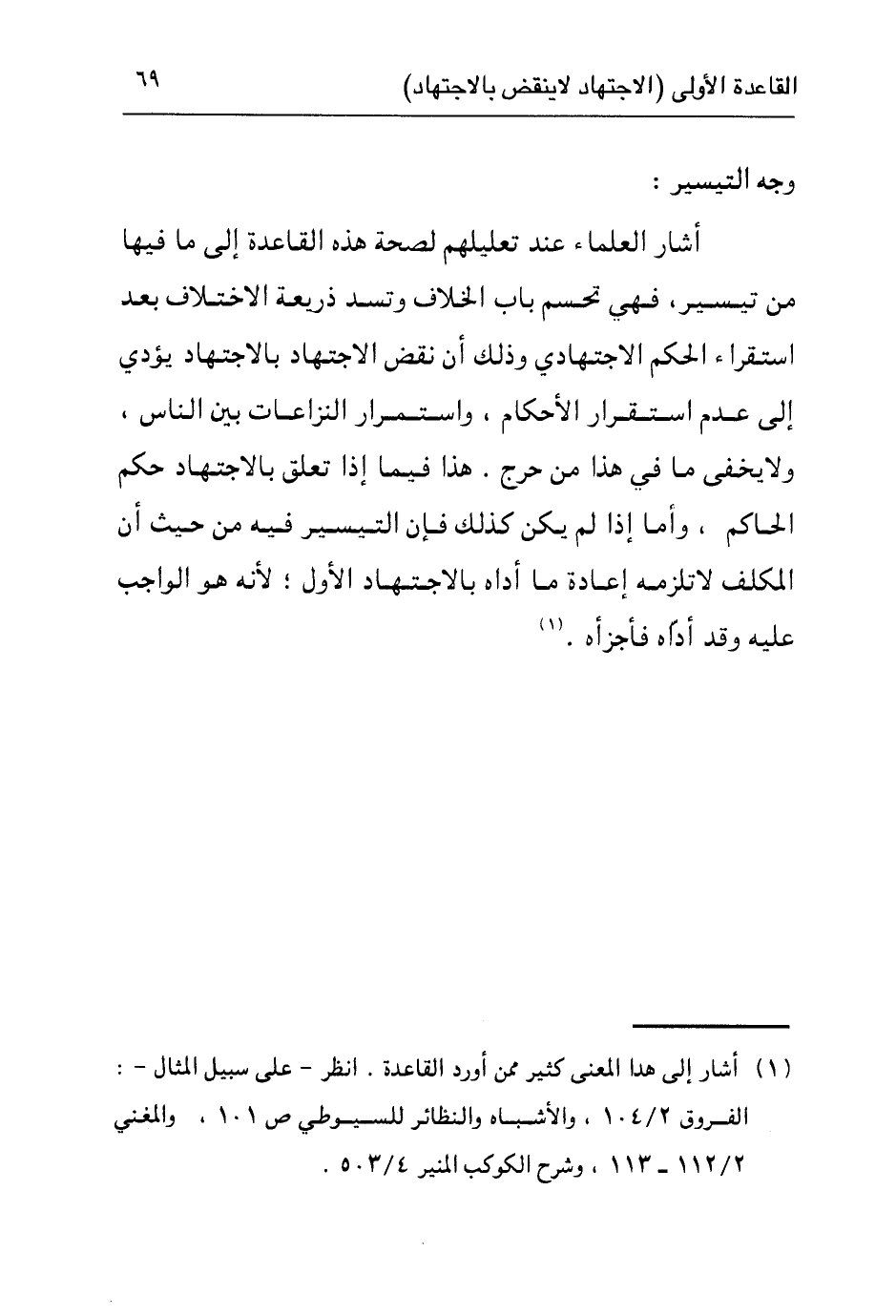 ١ أشار إلى هذا المعنى كثير ممن أورد القاعدة. انظر: - على سبيل المثال - الفروق ٢/١٠٤، والأشباه والنظائر ص١٠١، والمغني ٢/١١٢-١١٣، وشرح الكوكب المنير ٤/٥٠٣.