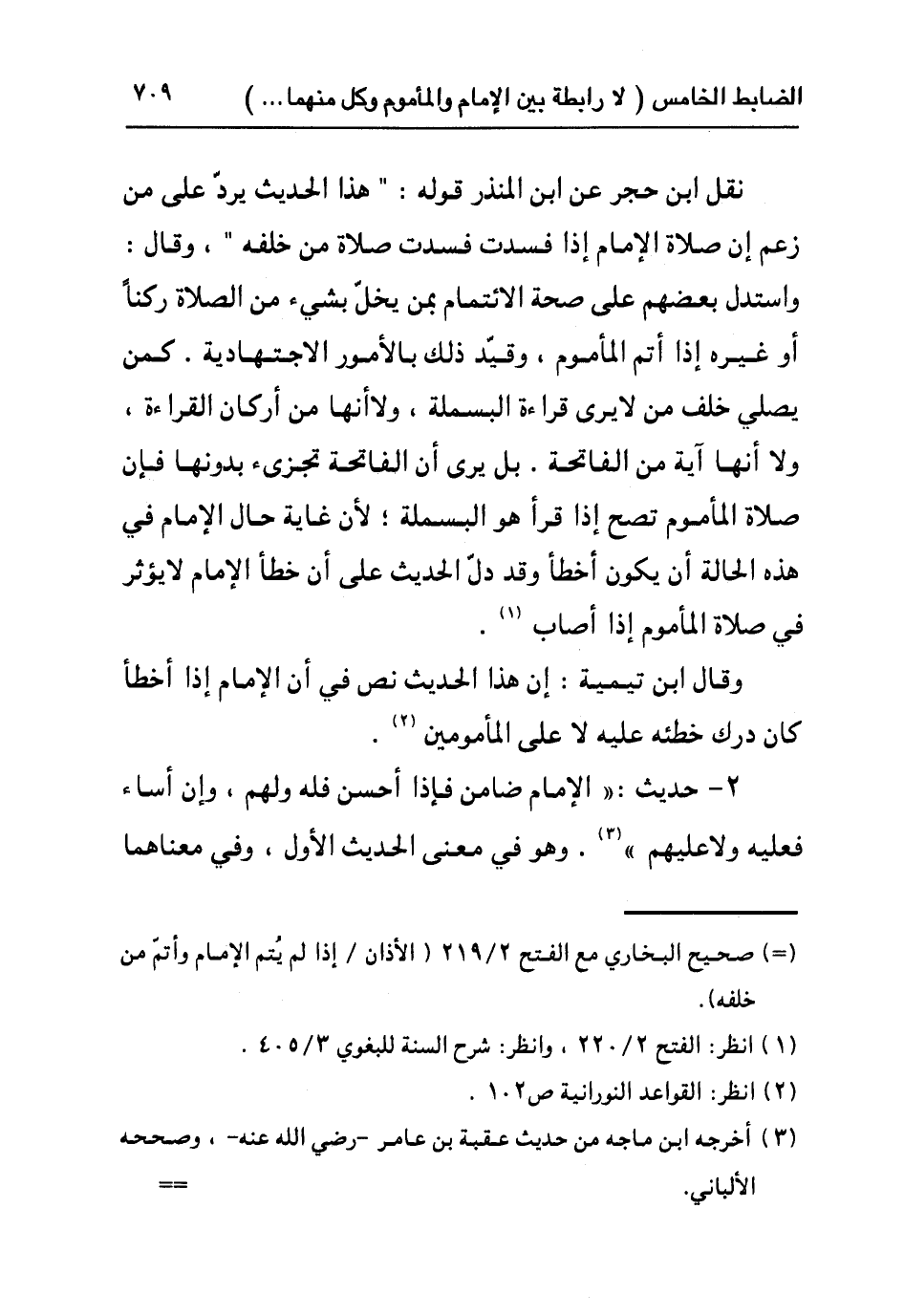 وقال ابن تيمية: إن هذا الحديث نص في أن الإمام إذا أخطأ كان درك خطئه عليه لا على المأمومين٢.