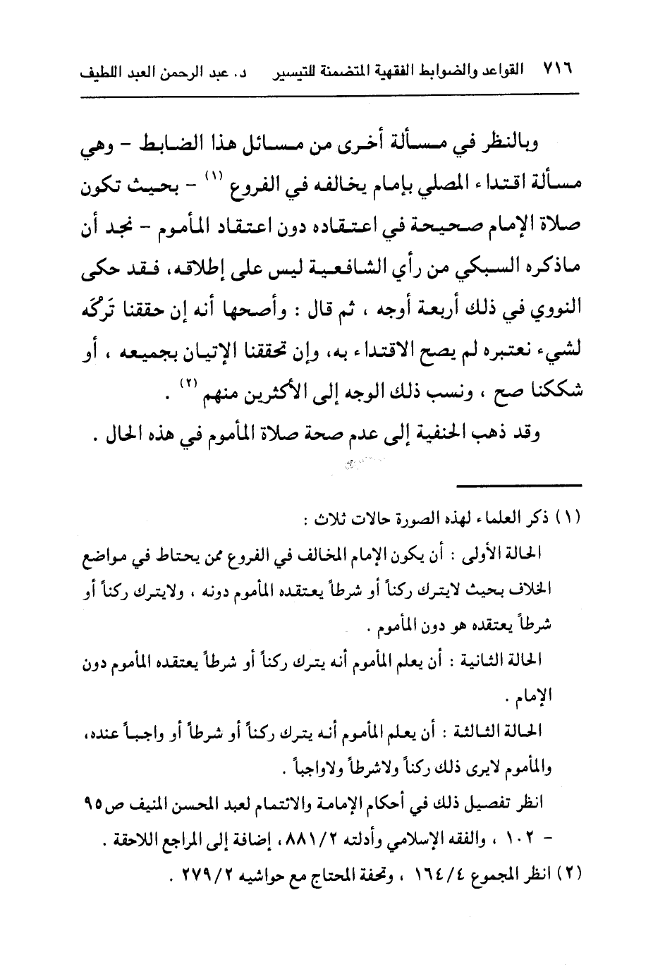 انظر تفصيل ذلك في أحكام الإمام والإئتمام لعبد المحسن المنيف ص٩٥-١٠٢ووالفقه الإسلامي وأدلته ٢/٨٨١, إضافة إلى المراجع اللاحقة.