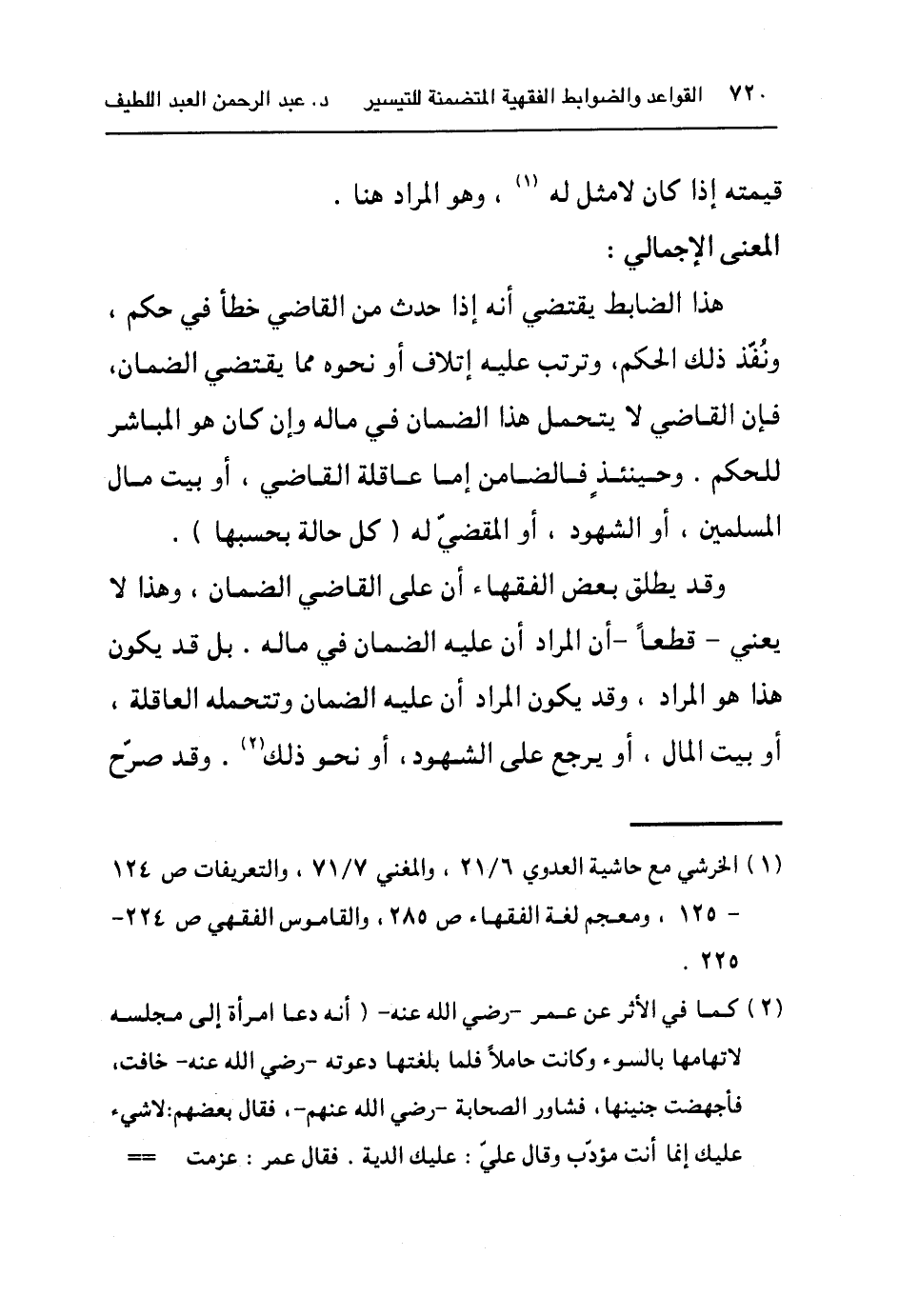 وقد يطلق بعض الفقهاء أن على القاضي الضمان, وهذا لا يعني-قطعاً- أن المراد أن عليه الضمان في ماله. بل قد يكون هذا هو المراد, وقد يكون المراد أن عليه الضمان وتتحمل العاقلة, أو بيت المال, أو يرجع على الشهود, أو نحو ذلك٢. وقد صرح
