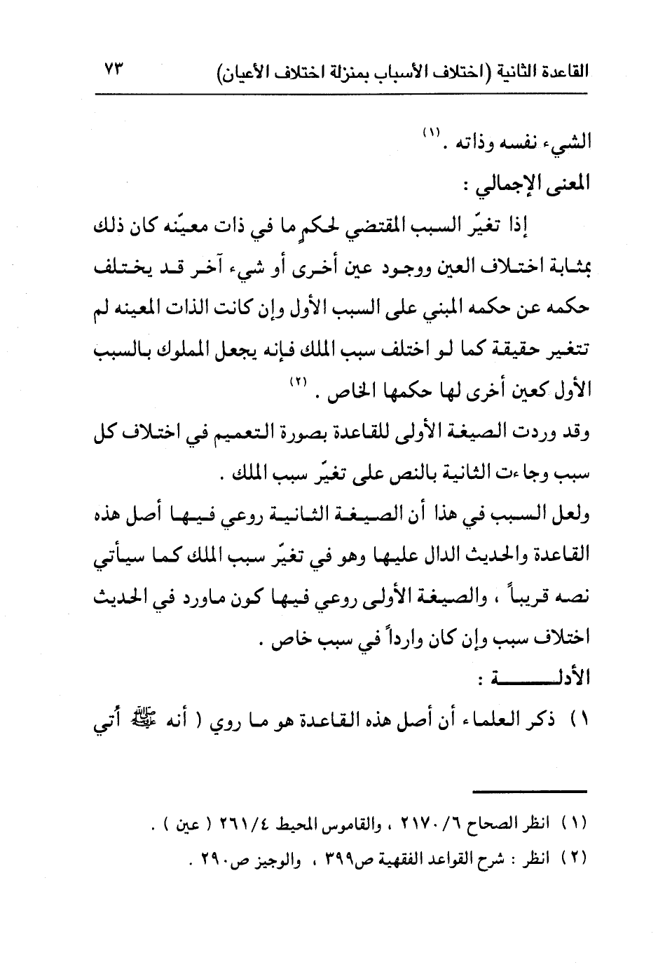 ولعل السبب في هذا أن الصيغة الثانية روعي فيها أصل هذه القاعدة والحديث الدال عليها وهو في تغيّر سبب الملك كما سيأتي نصه قريبا، والصيغة الأولى روعي فيها كون ما ورد في الحديث اختلاف سبب وإن كان واردا في سبب خاص.
