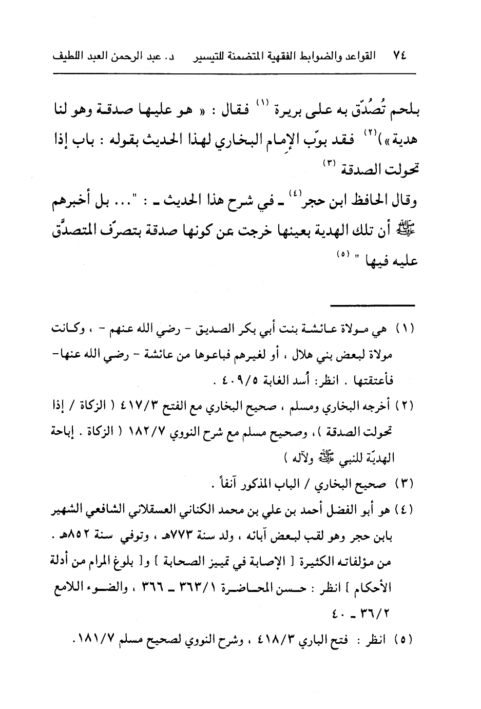 وقال الحافظ ابن حجر٤ - في شرح هذا الحديث - "بل أخبرهم صلى الله عليه وسلم أن تلك الهدية بعينها خرجت عن كونها صدقة بتصرف المتصّدق عليه فيها"٥.