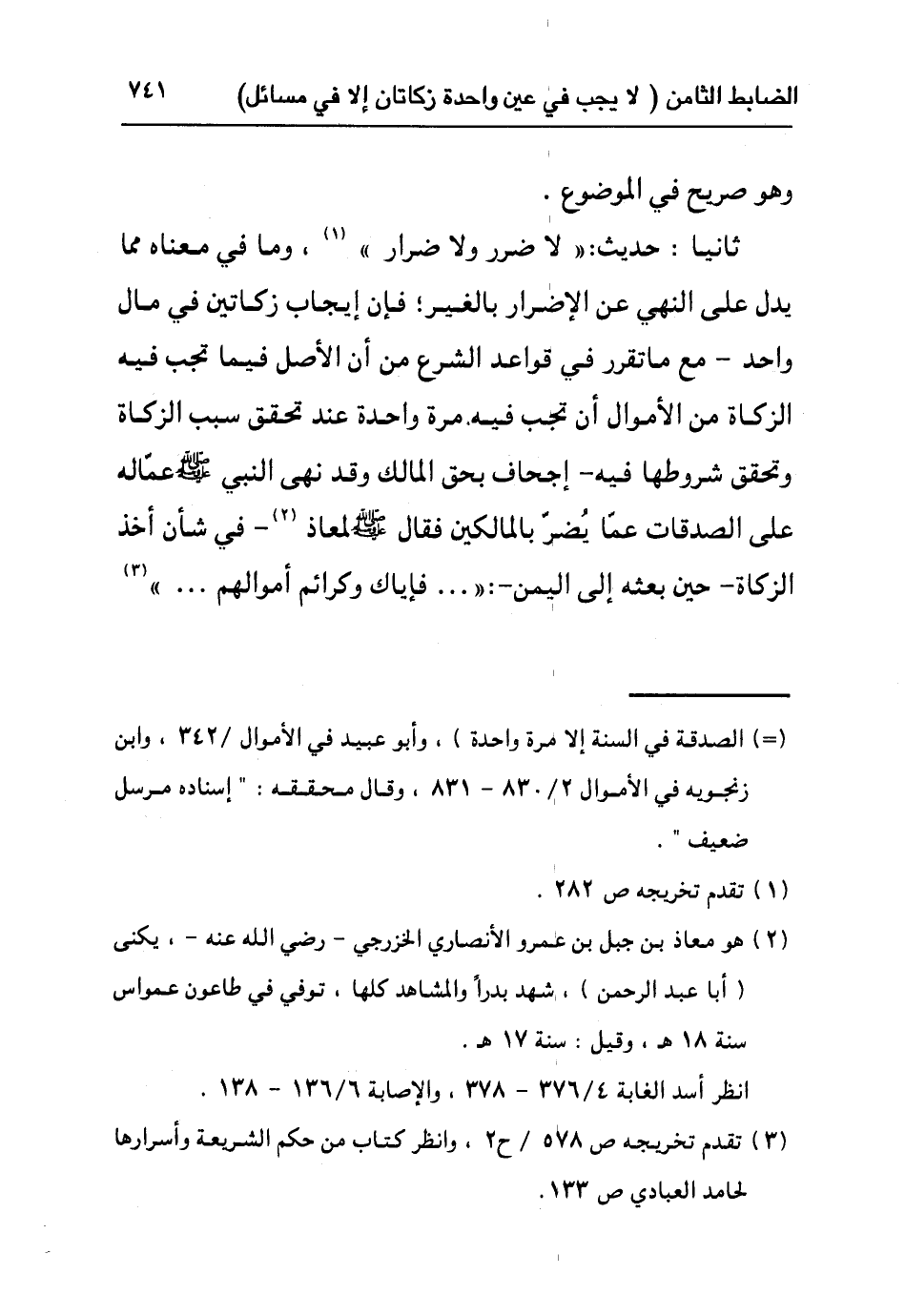 ثانياً: حديث: "لا ضرر ولا ضرار", وما في معناه مما يدل على النهي عن الاضطرار بالغير؛ فإن إيجاب زكاتين في مال واحد - مع ما تقرره في قواعد الشرع من أن الأصل فيما تجب فيه الزكاة من الأموال أن تجب فيه مرة واحدة عند تحقق سبب الزكاة وتحقق شروطها فيه - إحجاب بحق المالك وقد نهى النبي صلى الله عليه وسلم عماله على الصدقات عما يضر بالمالكين فقال صلى الله عليه وسلم لمعاذ١- في شأن أخذ الزكاة - حين بعثه إلى اليمن -: " ... فإياك وكرائم أموالهم ... "٢.