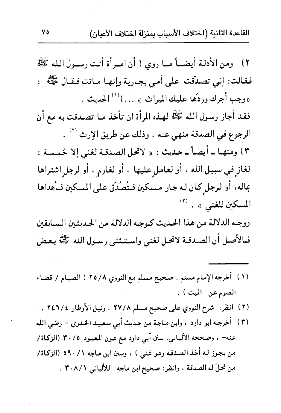 ٣) ومنها - أيضا - حديث: "لا تحل الصدقة لغني إلا لخمسة: لغاز في سبيل الله، أو لعامل عليها، أو لغارم، أو لجار اشتراها بماله، أو لرجل كان له جار مسكين فتُصُدّق على المسكين فأهداها المسكين للغني"٣.