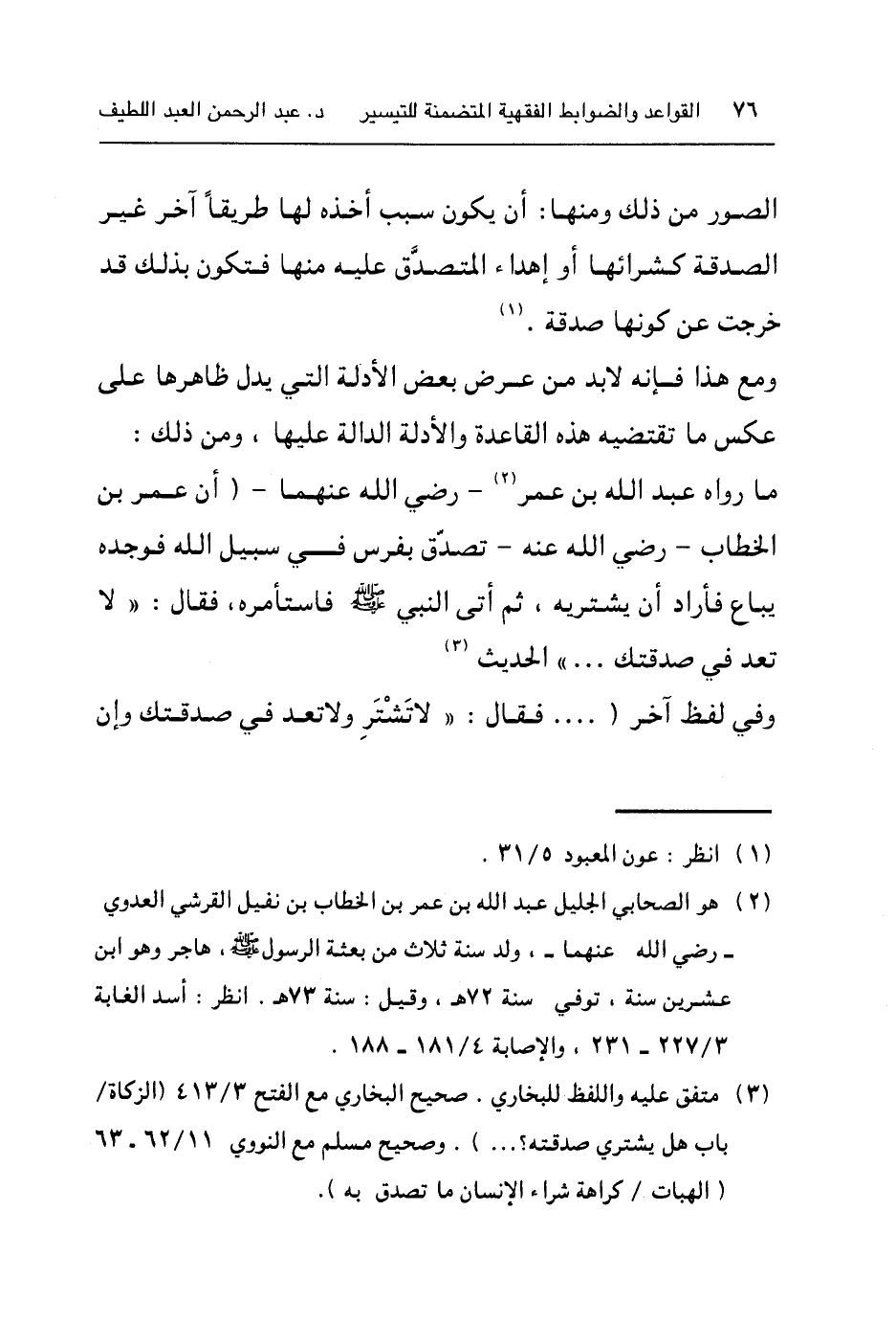 ٣ متفق عليه واللفظ للبخاري، صحيح البخاري مع الفتح ٣/٤١٣ (الزكاة / باب هل يشتري صدقته؟ ... ) ، وصحيح مسلم مع النووي ١١/٦٢-٦٣ (الهبات / كراهة شراء الإنسان ما تصدق به) .